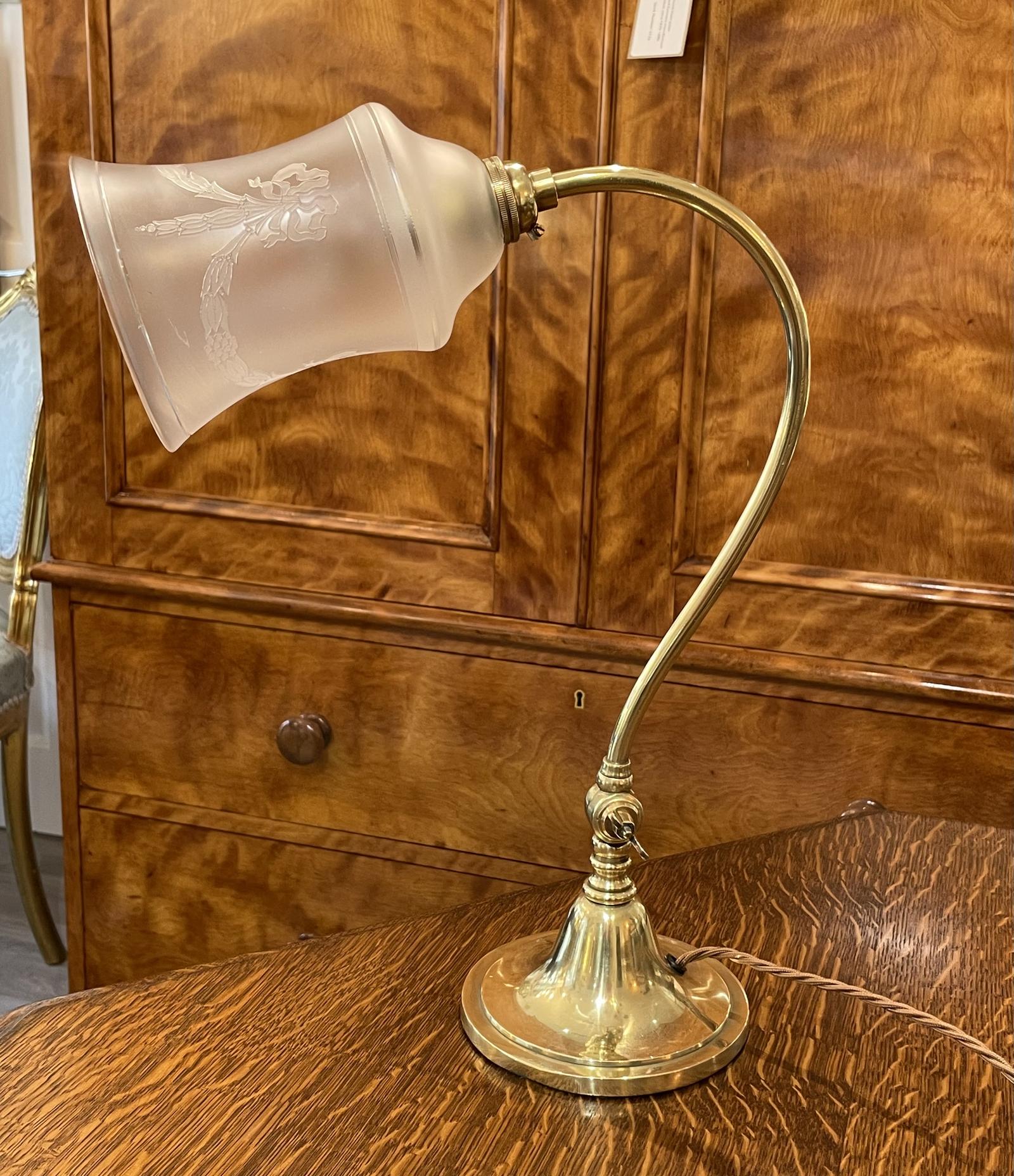Edwardian Brass Table Lamp With Original Shade (1 of 11)