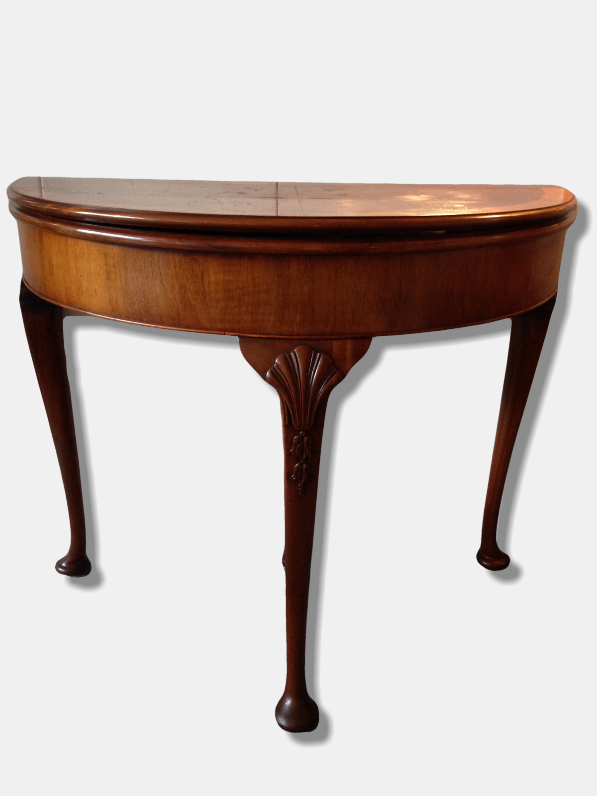 Edwardian Burr Walnut & Satinwood Demi Lune Card Table c.1910