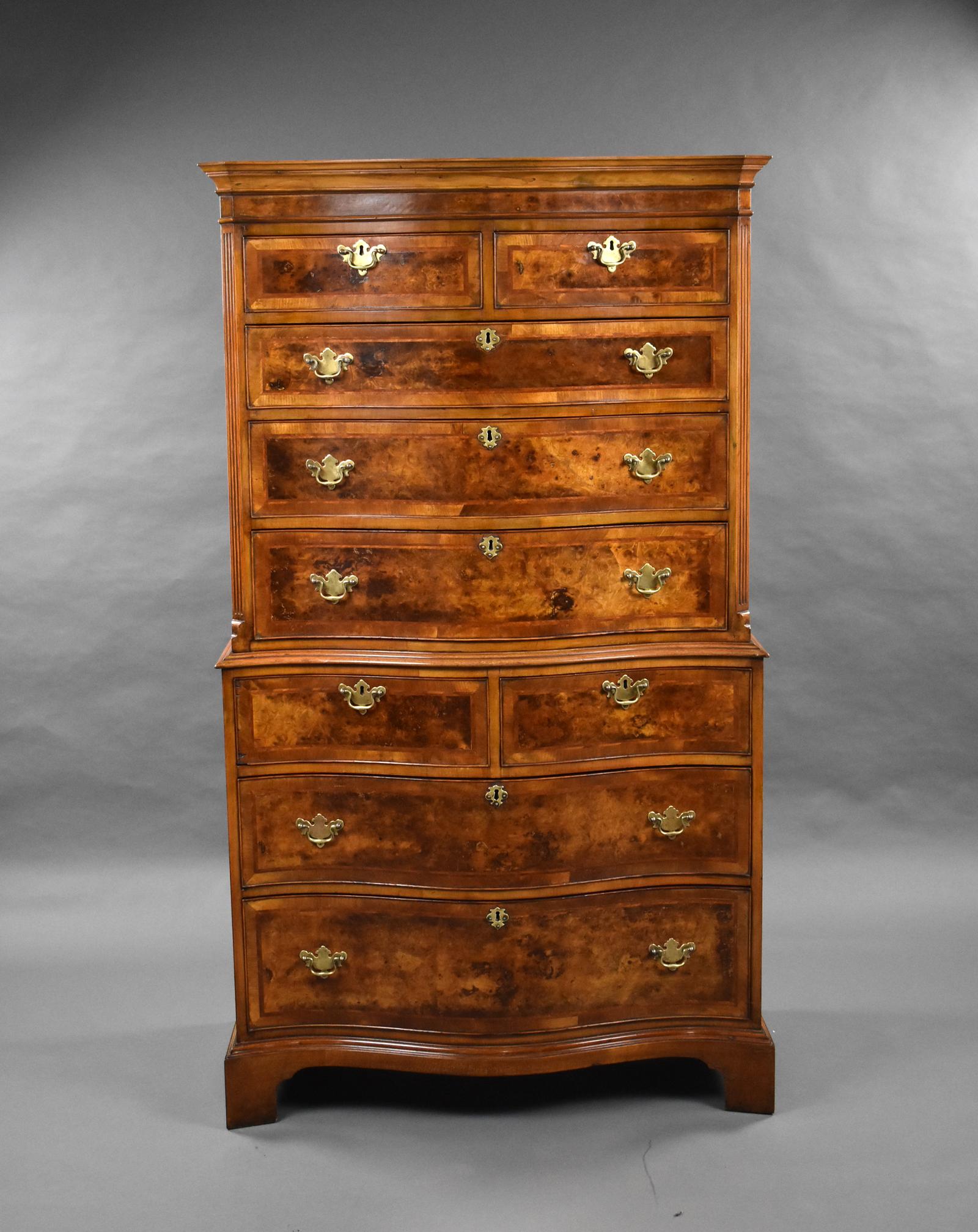 Edwardian Burr Walnut Serpentine Chest on Chest