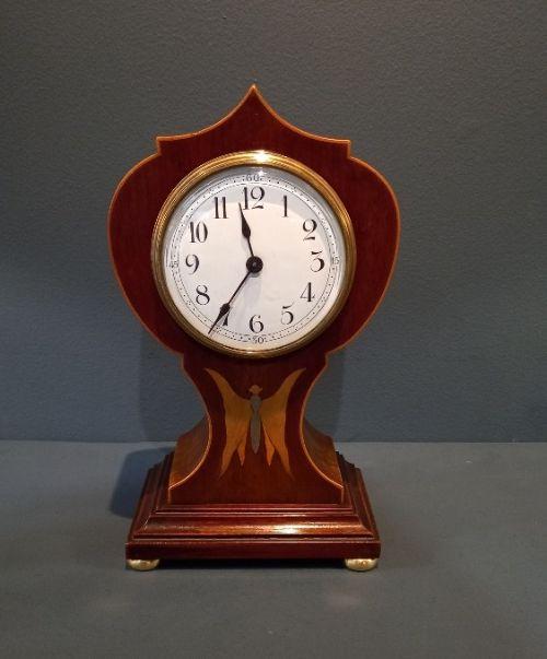Edwardian Butterfly Inlaid Mahogany Mantel Clock