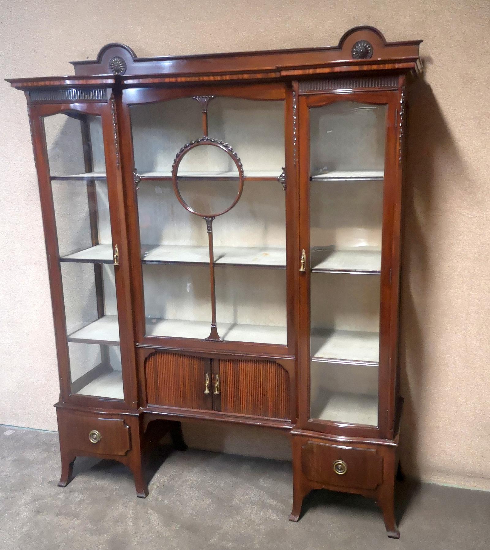 Edwardian Carved Mahogany Display Cabinet / China Cabinet