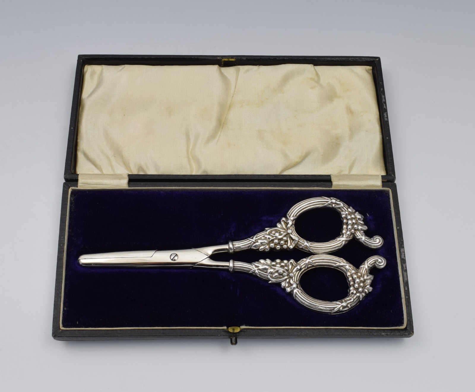 Edwardian Cased Silver Grape Scissors Levi & Salaman