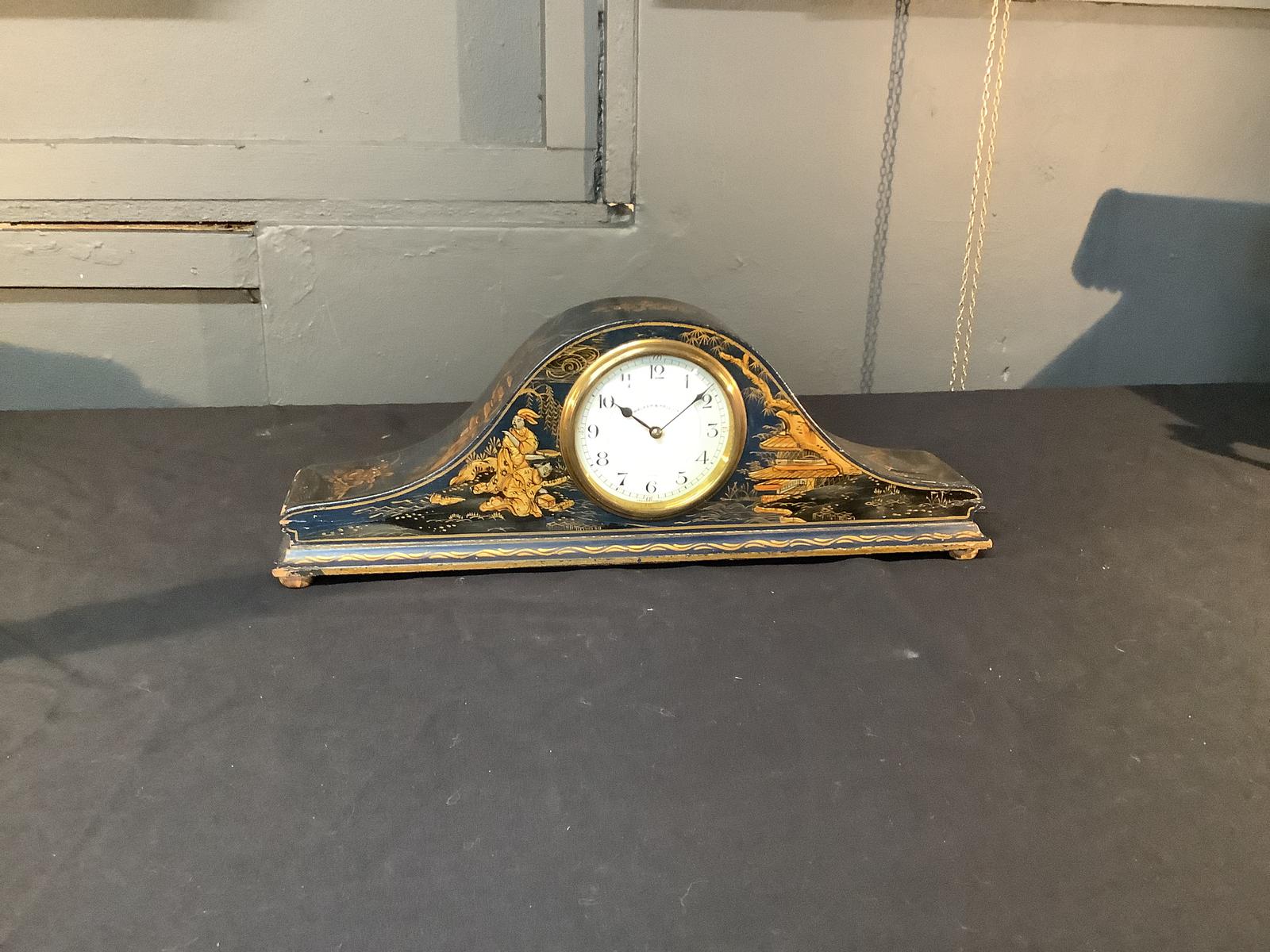 Edwardian Chinoiserie Lacquered Mantle Clock
