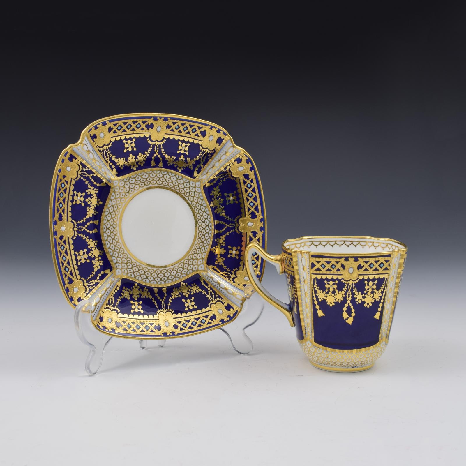 Edwardian Copeland Porcelain Jewelled Demitasse Coffee Cup & Saucer
