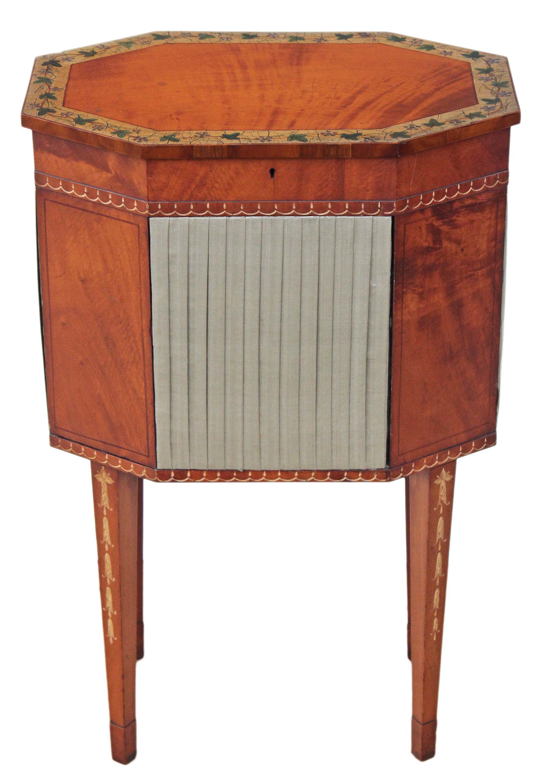 Edwardian Decorated Satin Walnut Work Side Table / Sewing Table / Basket Table