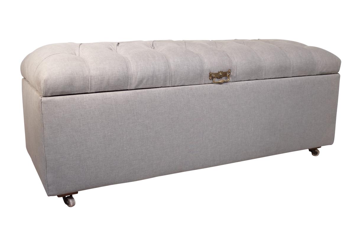 Edwardian Deep Buttoned Ottoman Upholstered in Linen