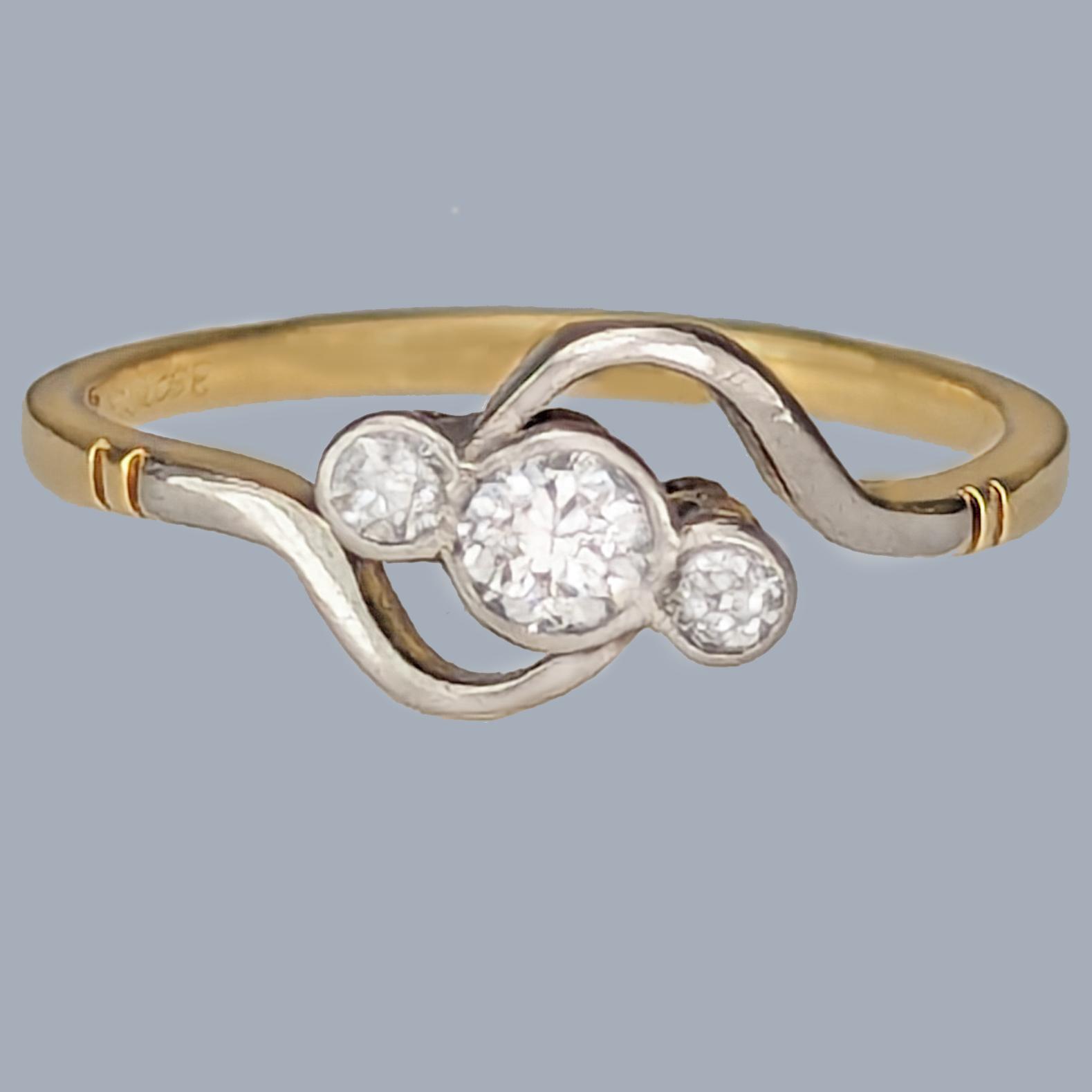 Edwardian Diamond Trilogy Ring 18ct Gold Antique Engagement Ring Vintage Three Stone Ring