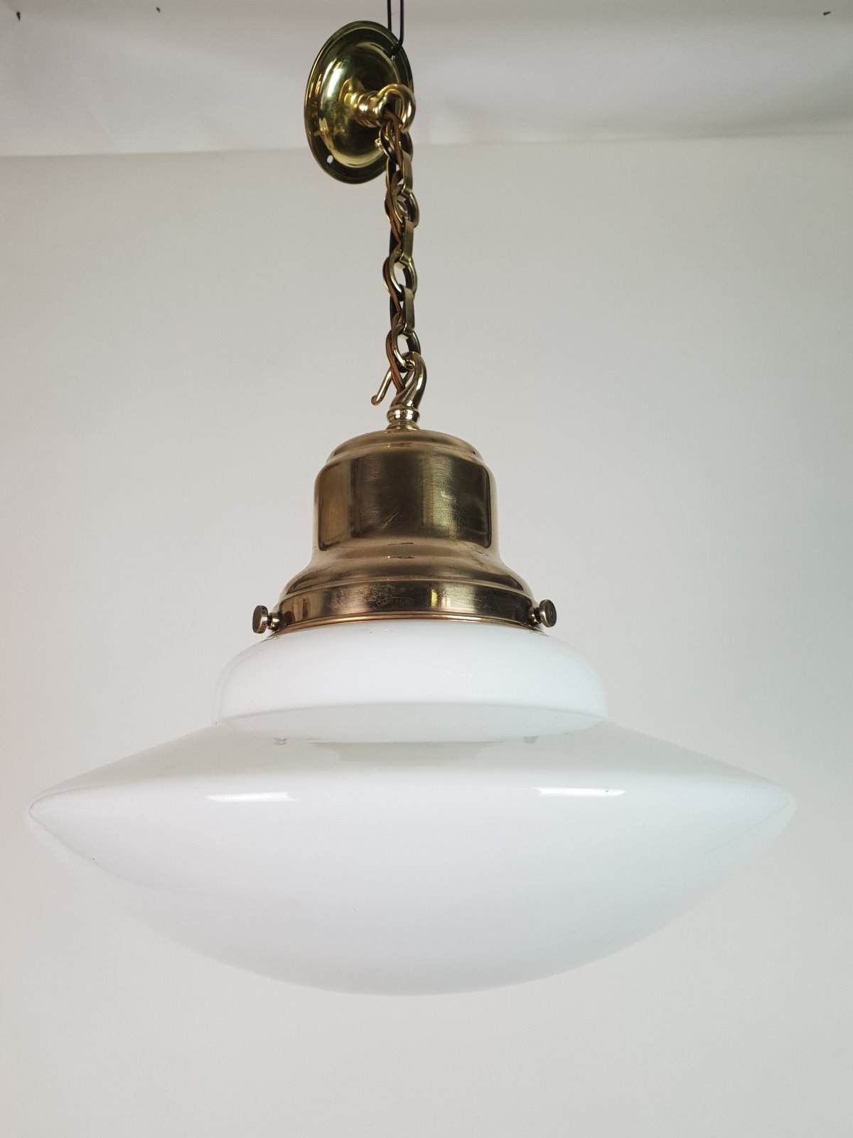 Edwardian Domed Bottom Opaline Ceiling Light with Original Brass Gallery