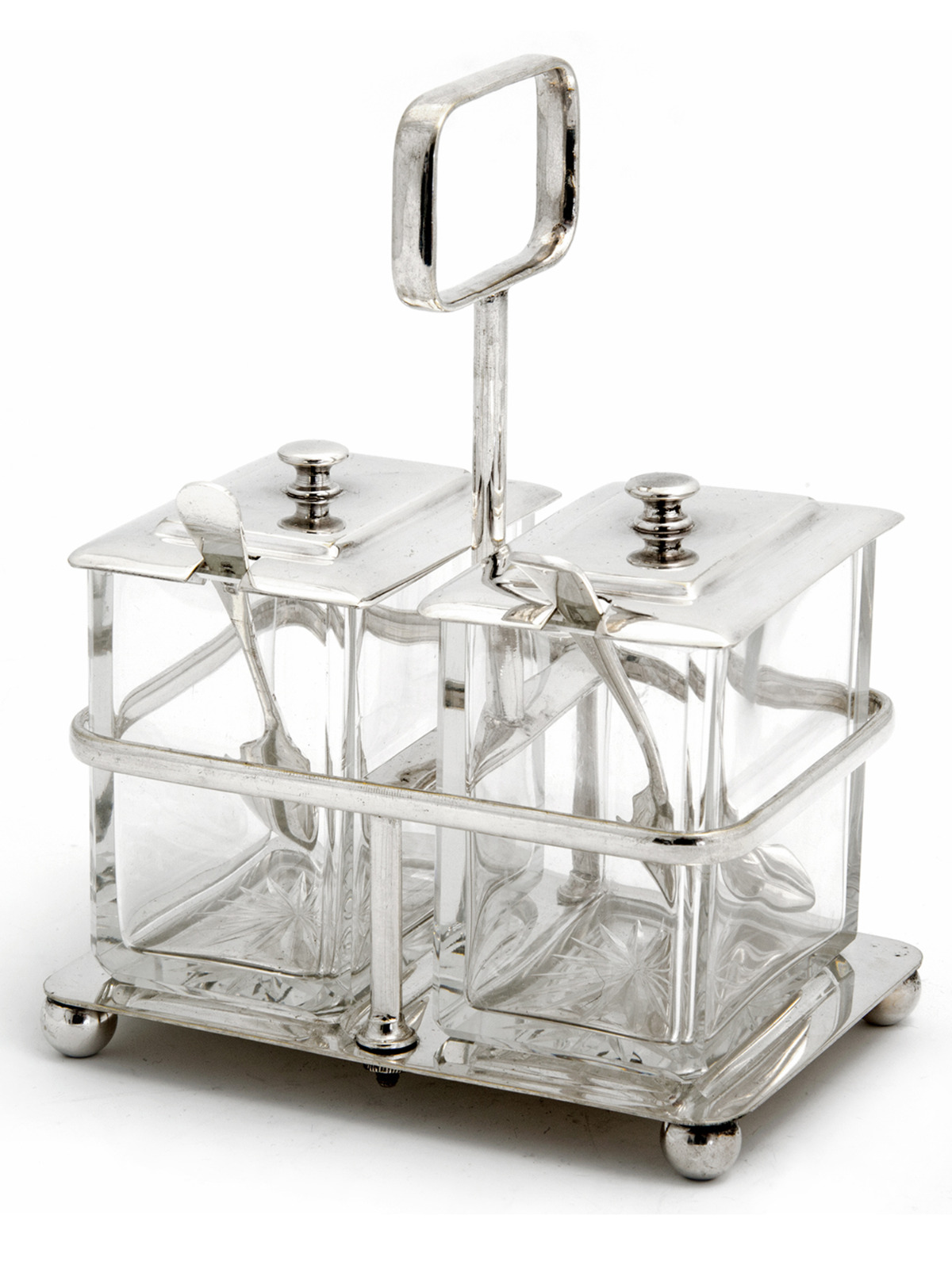 Edwardian Double Silver Plate & Cut Glass Preserve or Pickle Jar
