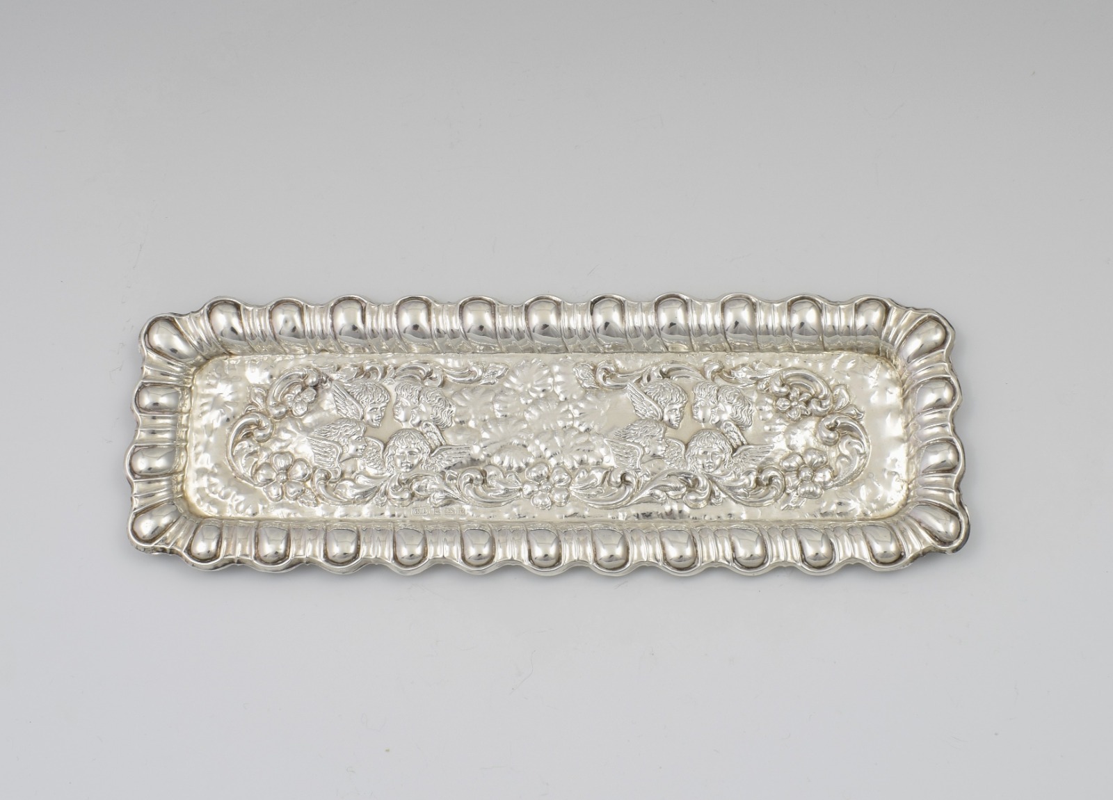 Edwardian Embossed Silver Dressing Table / Pen Tray Reynolds Angels