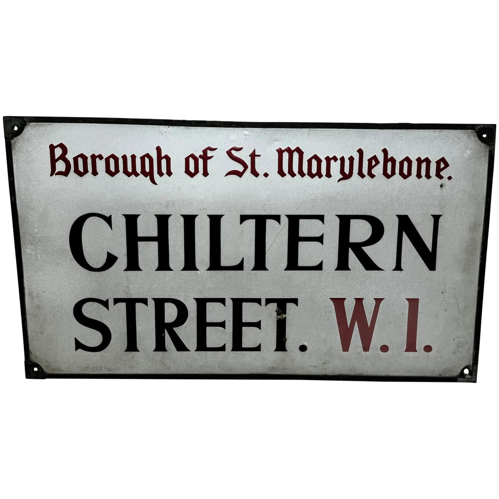 Edwardian Enamel Copper London Road Sign Borough of St Marylebone Chiltern Street W1