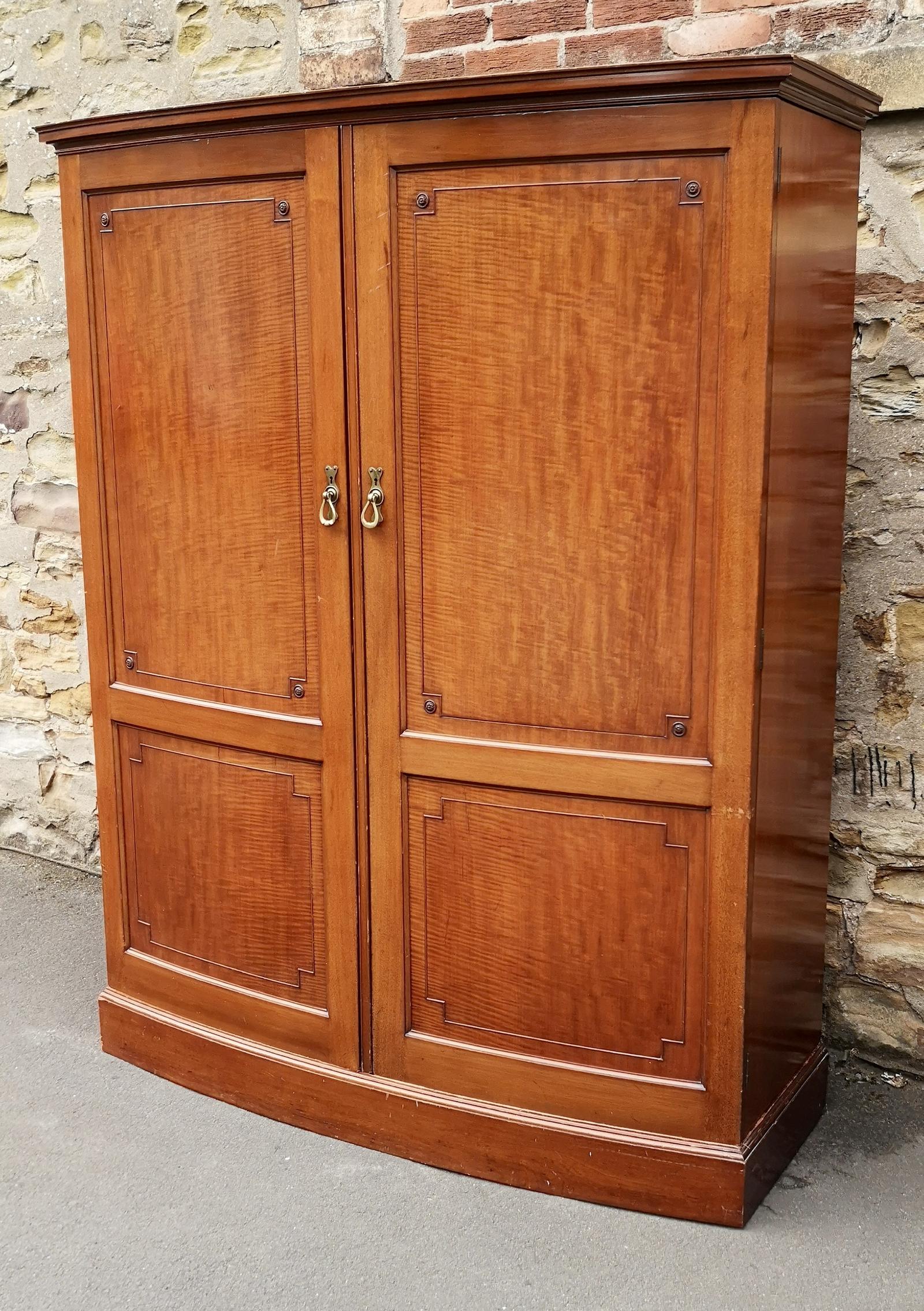 Edwardian Figured Mahogany Bow Front Wardrobe