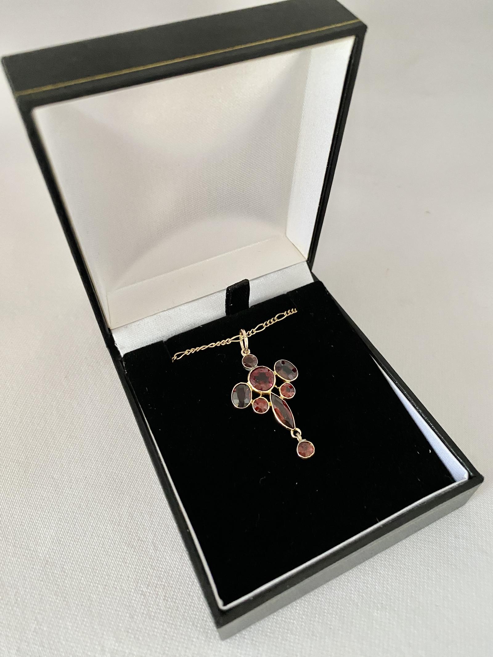 Edwardian Garnet Pendant & Chain. C1905