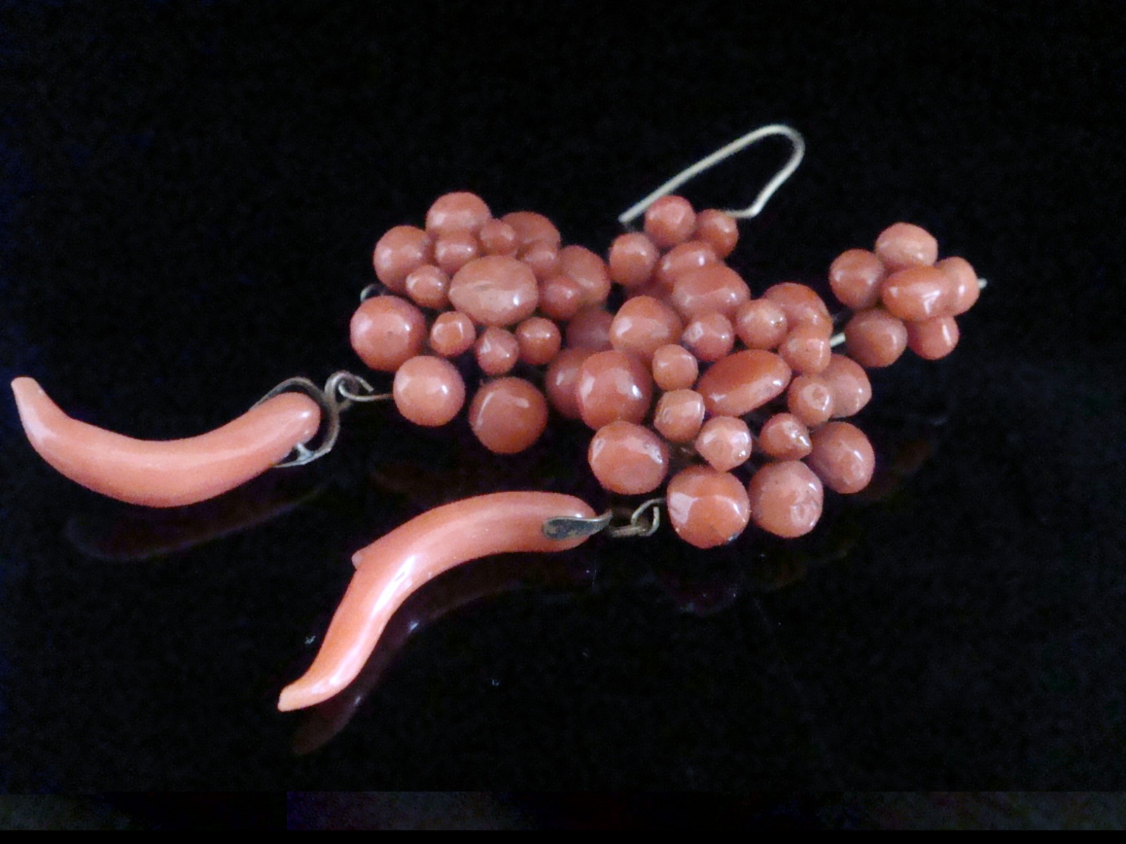 Edwardian Gilt Metal Natural Large Coral Drop Earrings