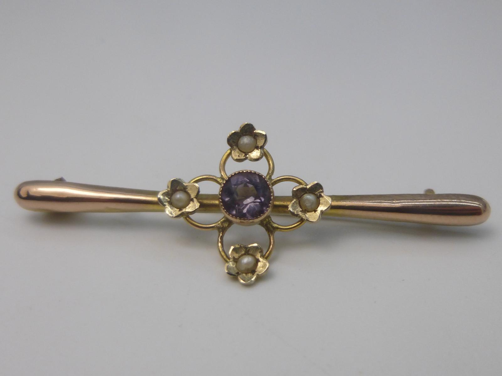 Edwardian Gold, Amethyst & Pearl Brooch