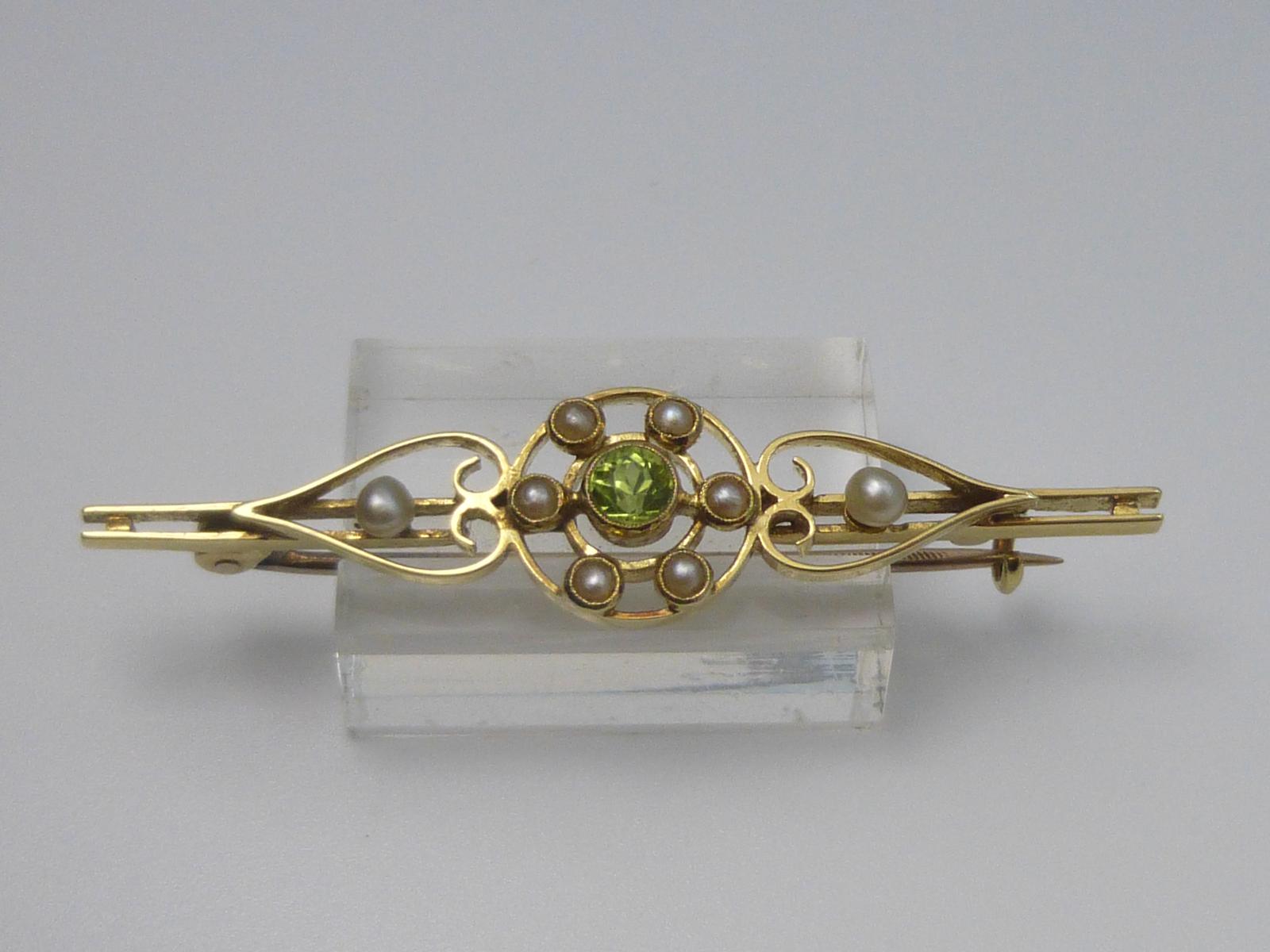 Edwardian Gold, Peridot & Pearl Brooch