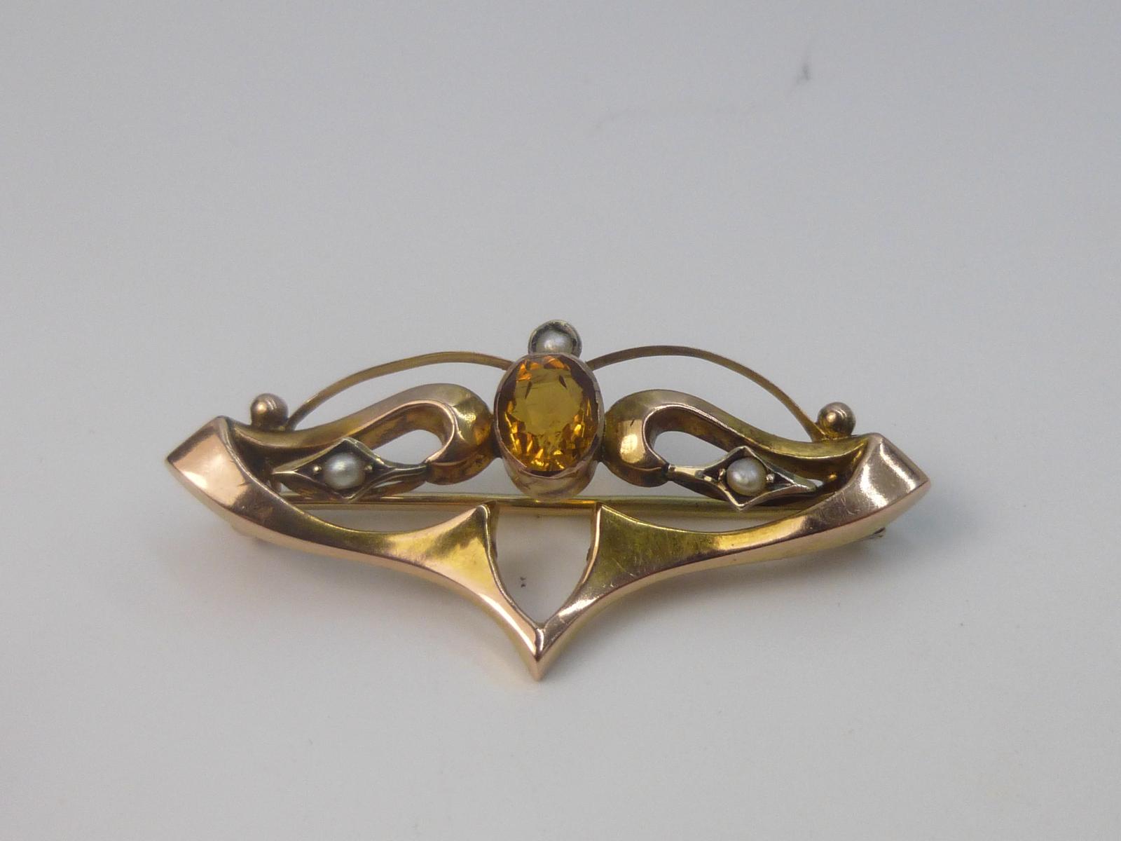 Edwardian Gold, Seed Pearl & Citrine Brooch
