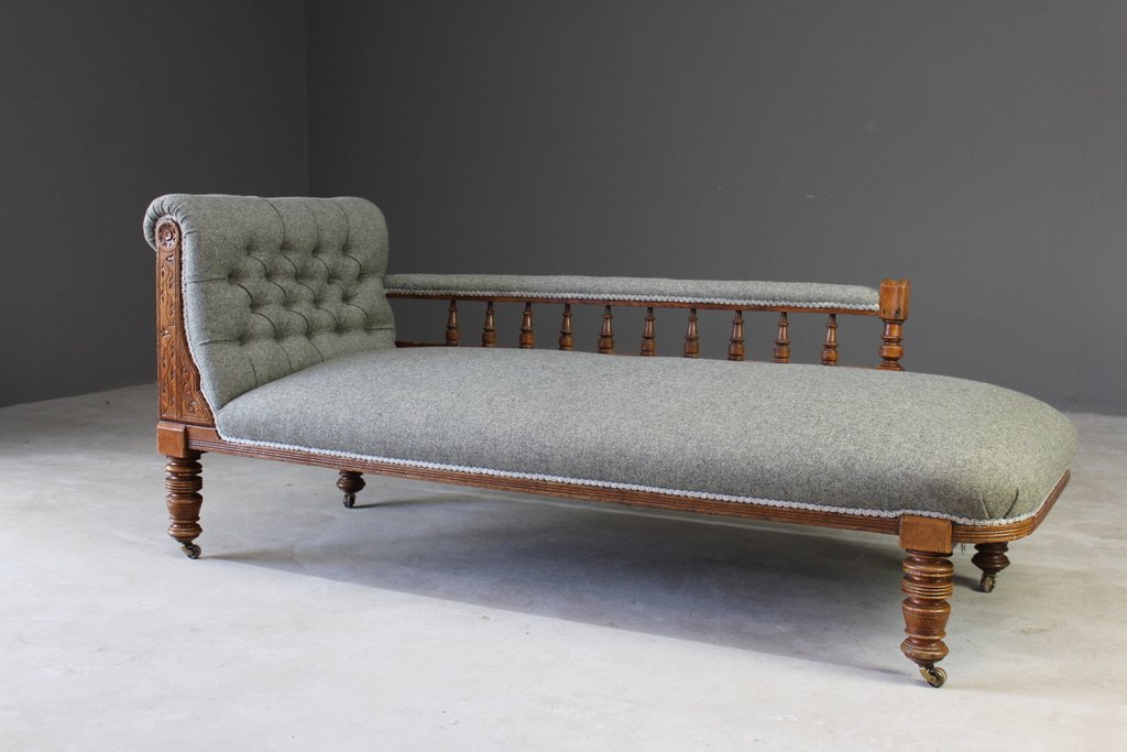 Edwardian Grey Wool Upholstered Chaise Longue (1 of 13)