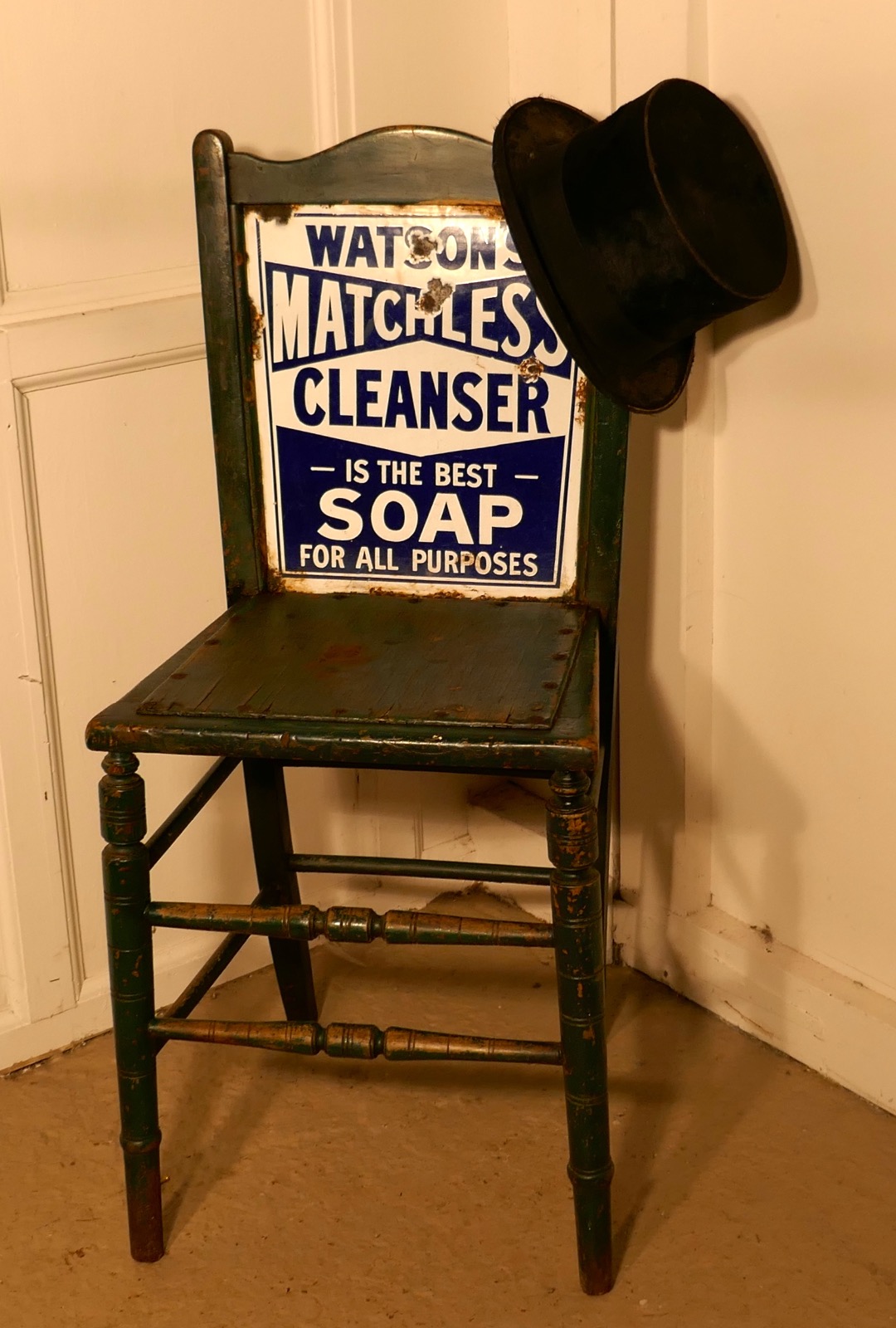 Edwardian Grocers Shop Advertising Chair, Scottish Enamel Sign Watson’s Matchless Soap