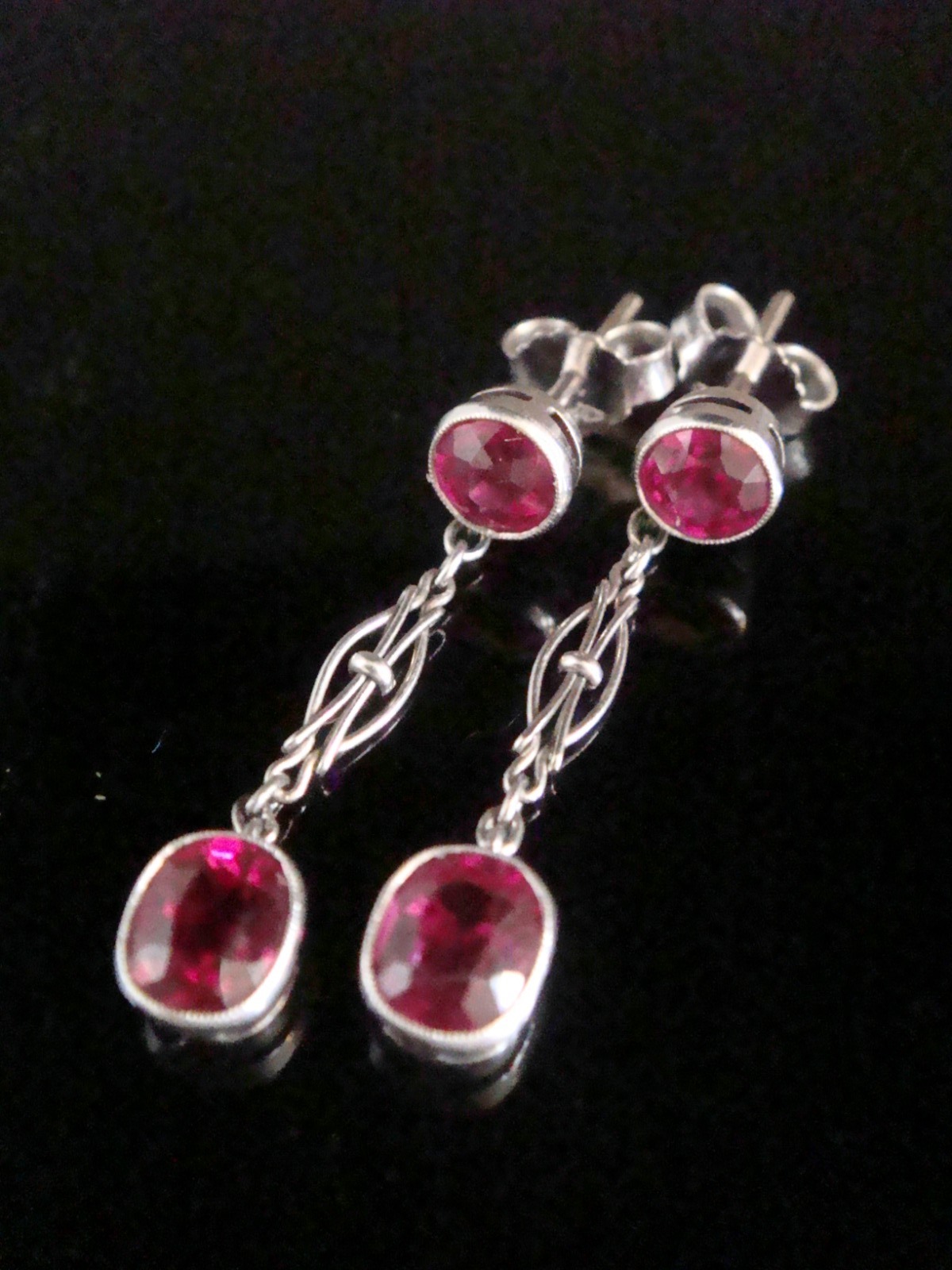 Edwardian Handmade Platinum Synthetic Ruby Drop Earrings