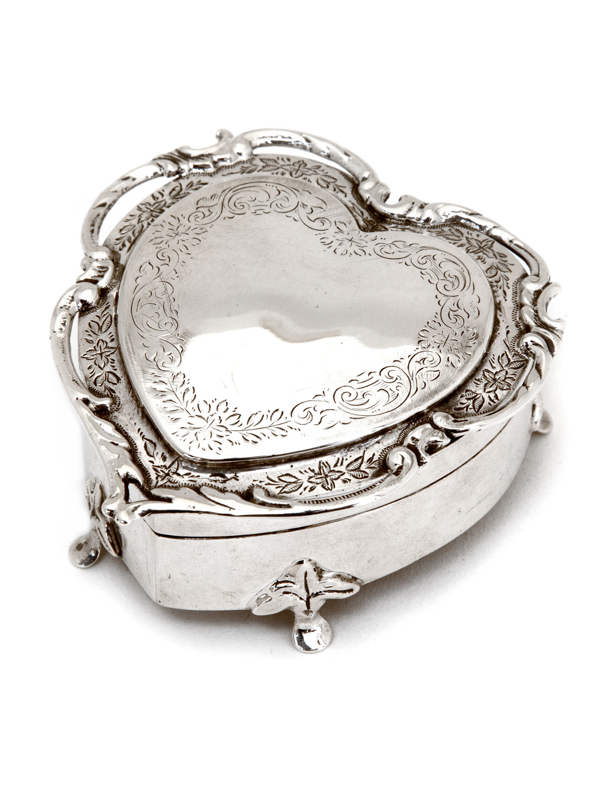 Edwardian Heart Shape Silver Jewellery Box with a Cast Applied Border & Blue Velvet Interior (1 of 1)