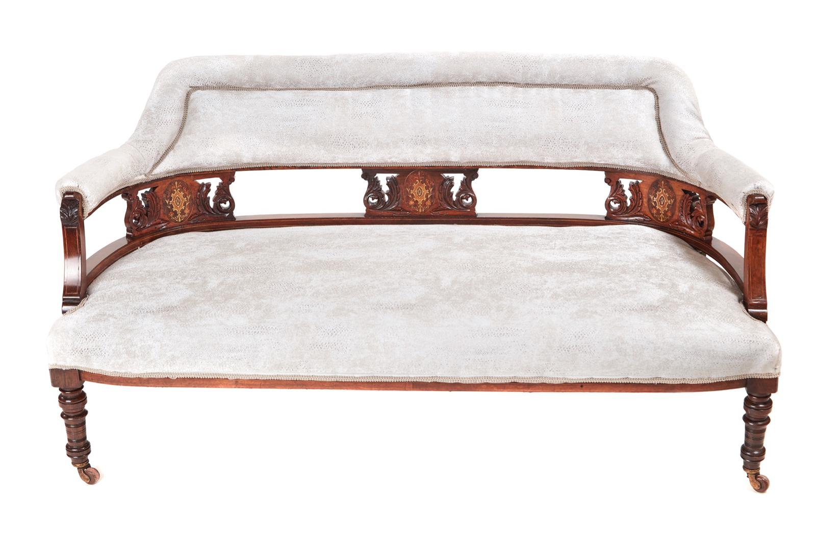 Edwardian Inlaid Carved Rosewood Settee/Sofa (1 of 8)