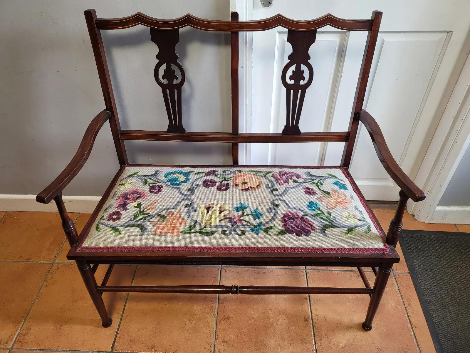 Edwardian Inlaid Double Seat Love Bench Sofa Window Seat