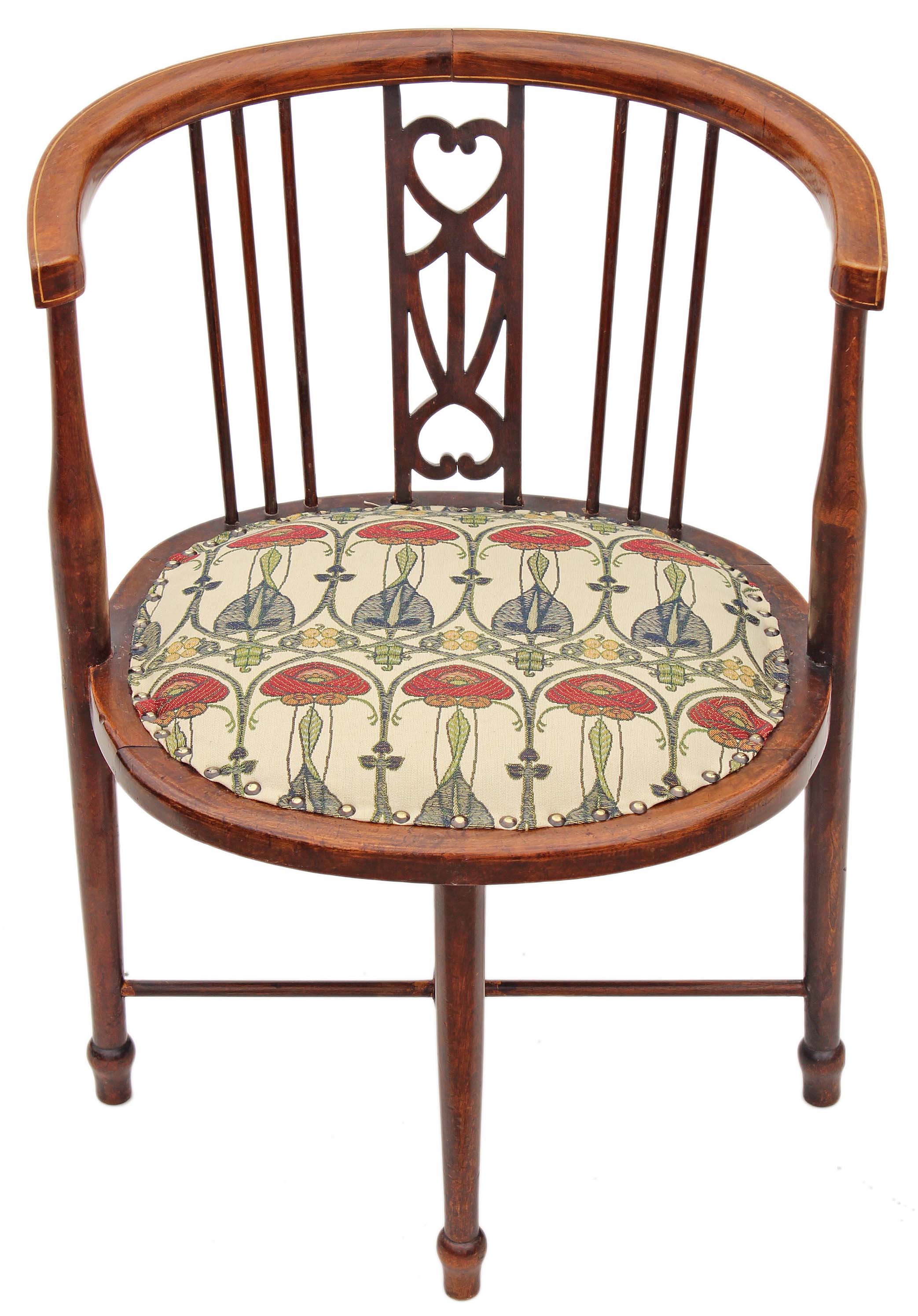 Edwardian Inlaid Mahogany Beech Corner Chair / Tub Chair / Side Chair / Hall Chair / Bedroom Chair