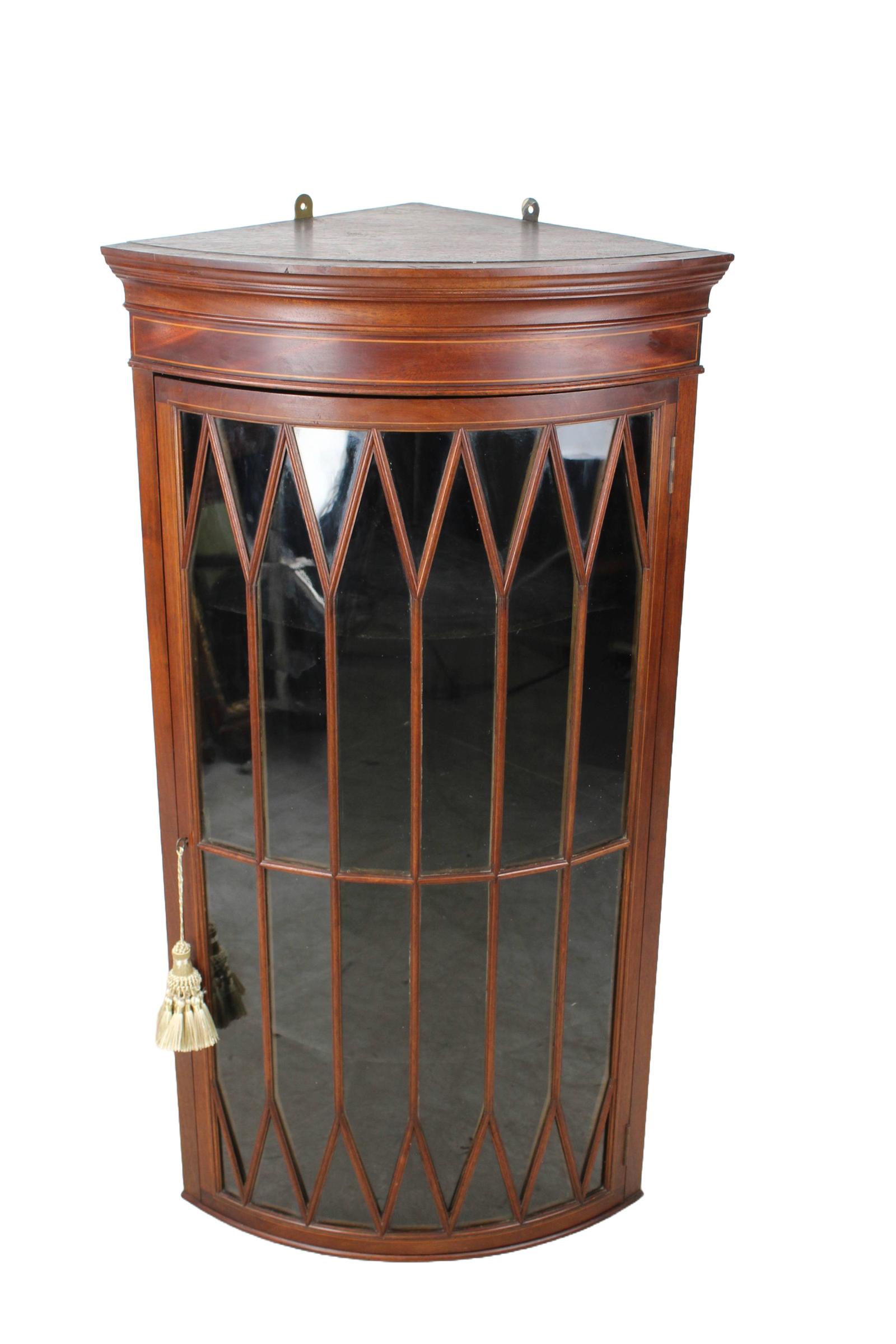 Edwardian Inlaid Mahogany Bow Front Corner Cupboard