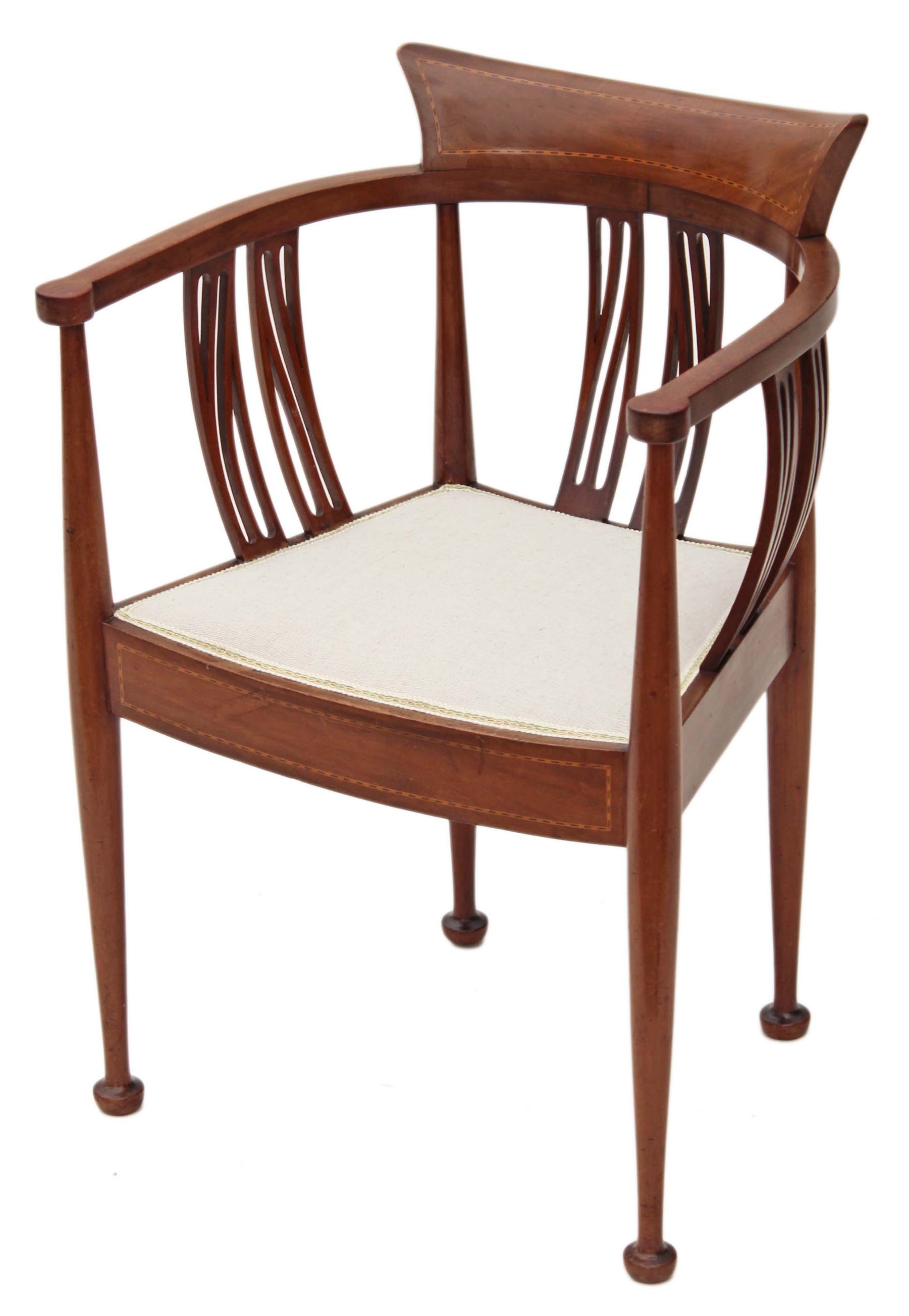 Edwardian Inlaid Mahogany Corner Armchair / Tub Chair / Side Chair / Hall Chair / Bedroom Chair
