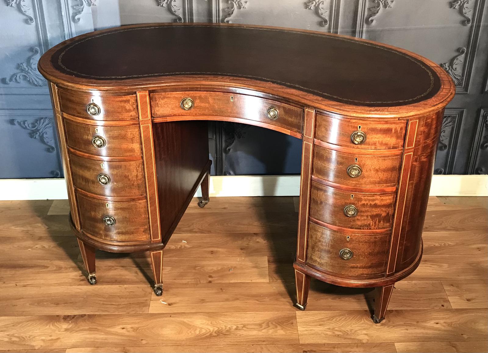 Edwardian Inlaid Mahogany Kidney Shaped Desk