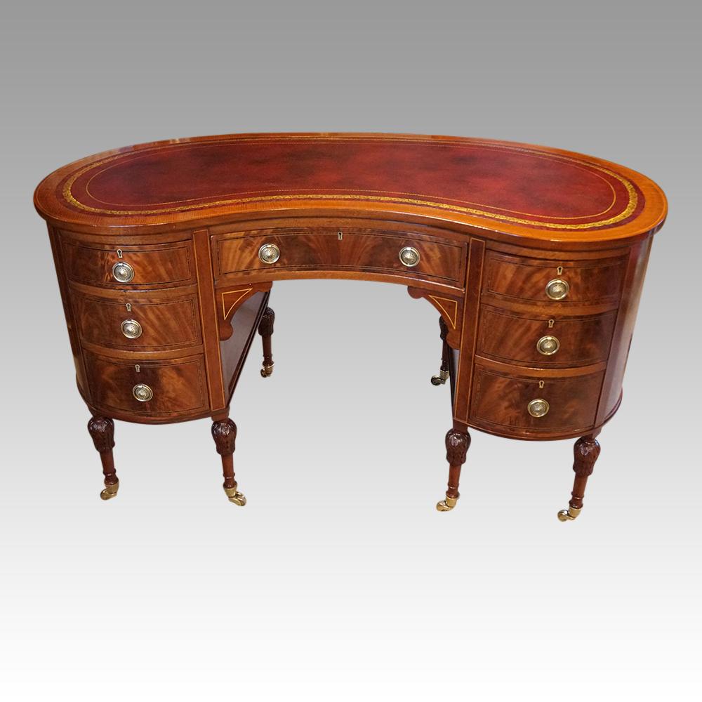 Edwardian Inlaid Mahogany Kidney Shaped Desk