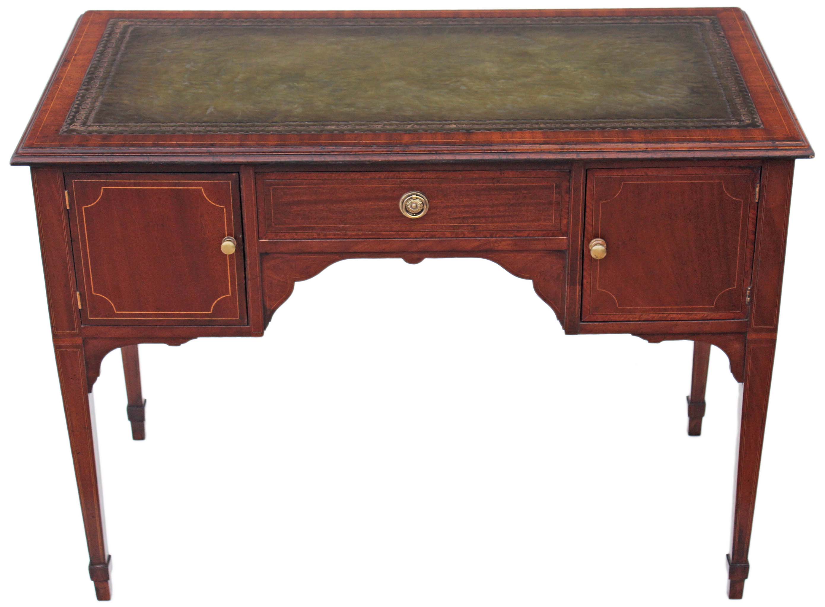 Edwardian Inlaid Mahogany Leather Desk / Writing Table