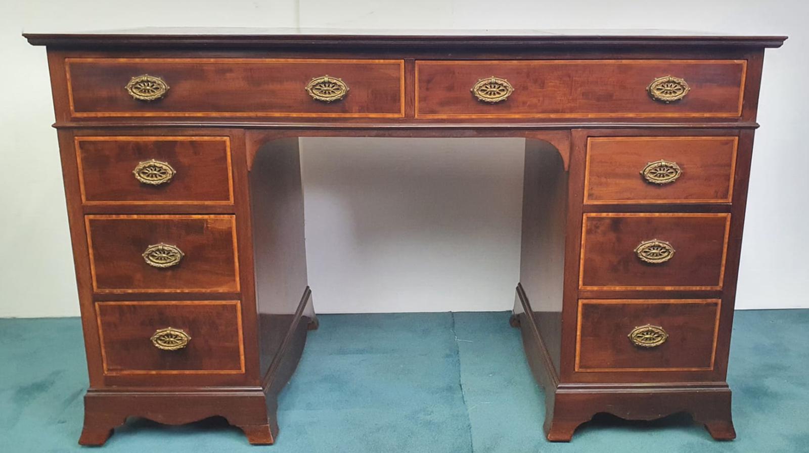 Edwardian Inlaid Mahogany Leather Top Desk