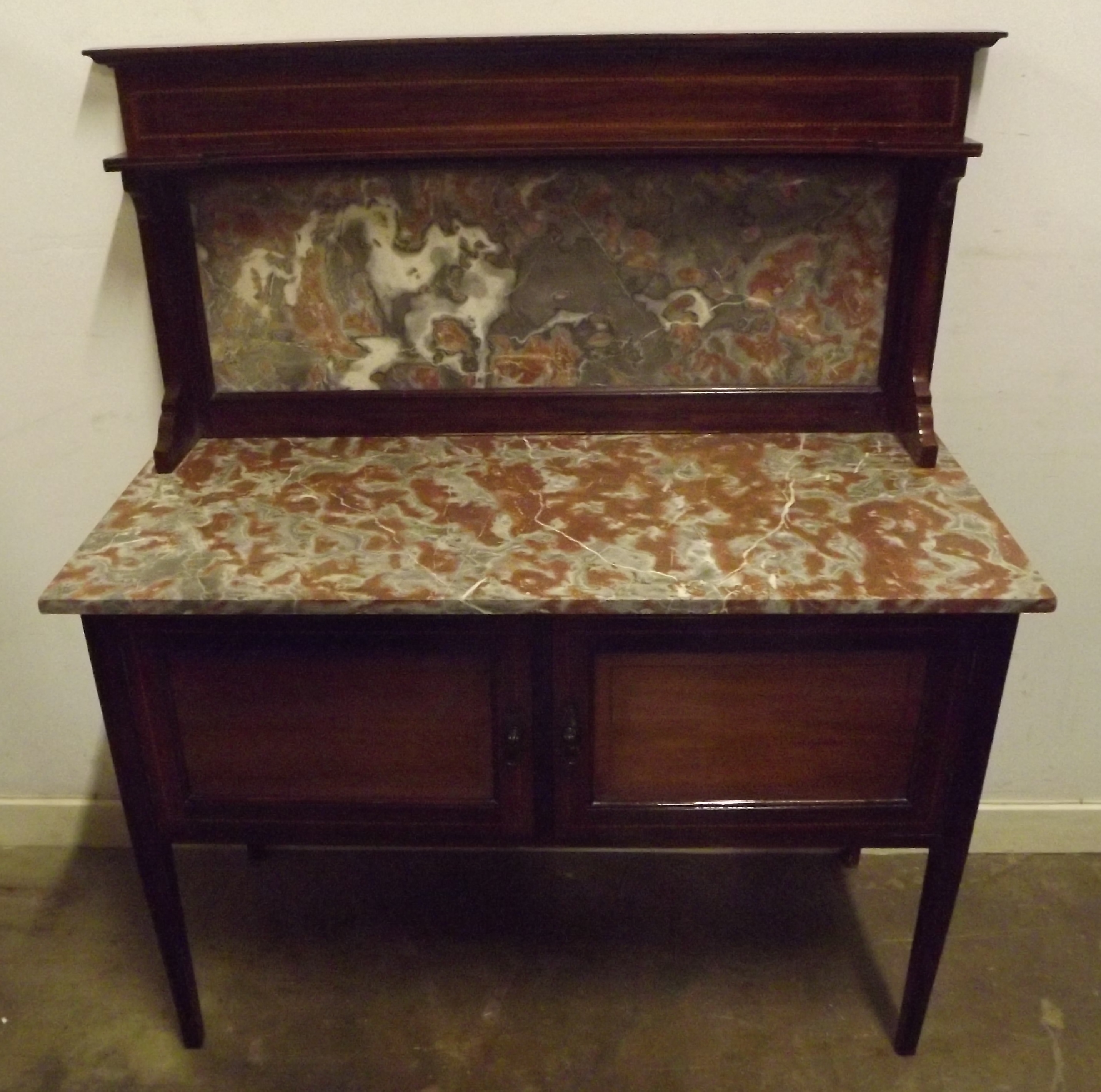 Edwardian Inlaid Mahogany Marble-Topped Washstand c.1905