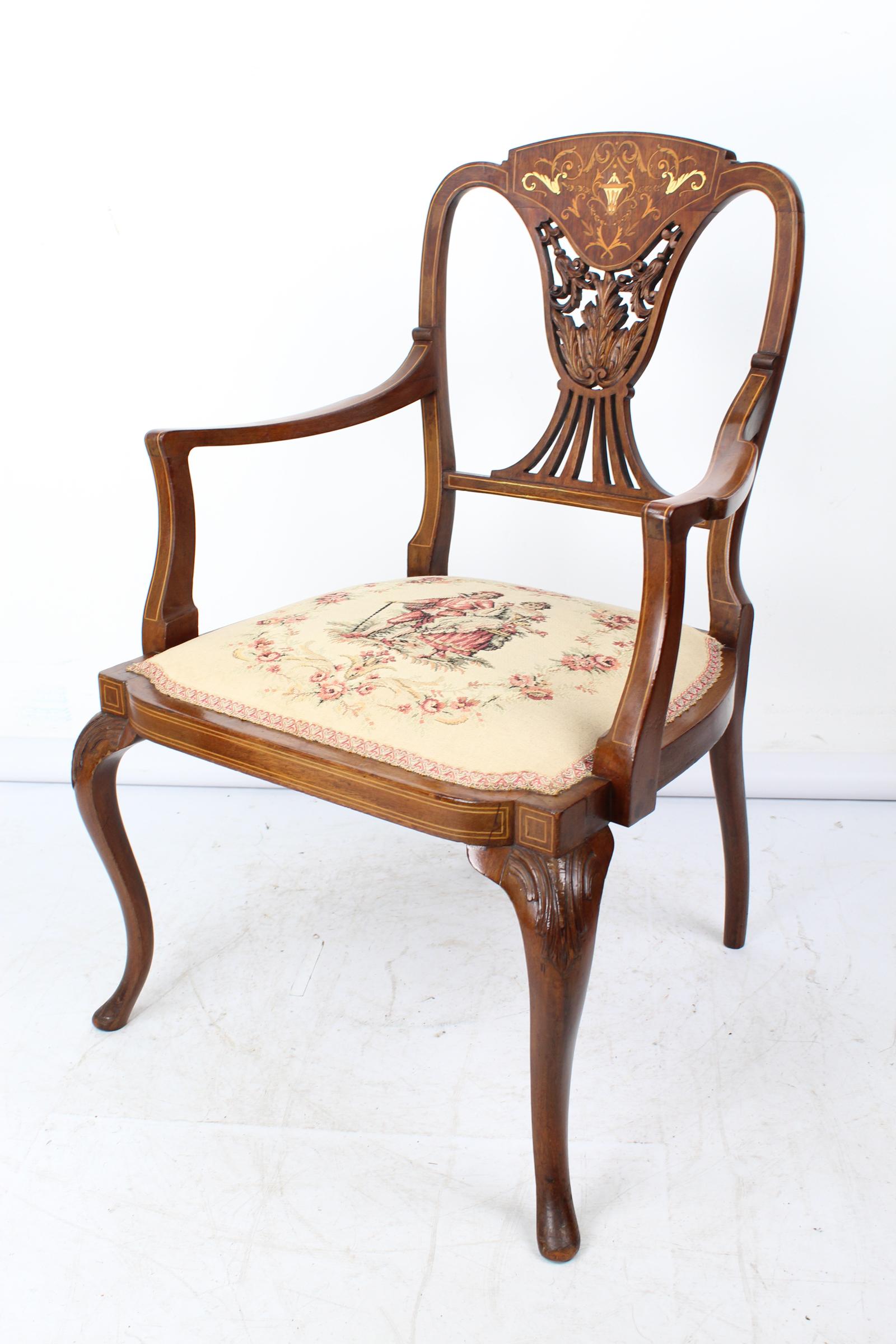 Edwardian Inlaid Mahogany Open Armchair (1 of 13)
