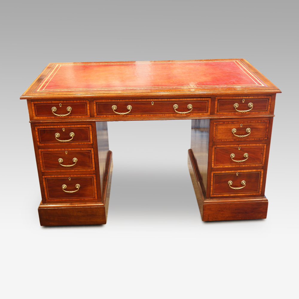 Edwardian Inlaid Mahogany Pedestal Desk (1 of 1)