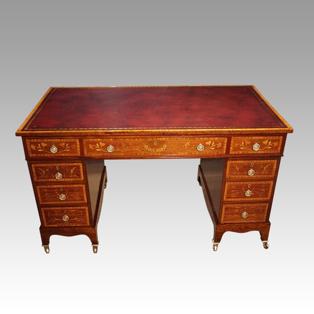 Edwardian Inlaid Mahogany Pedestal Desk (1 of 13)