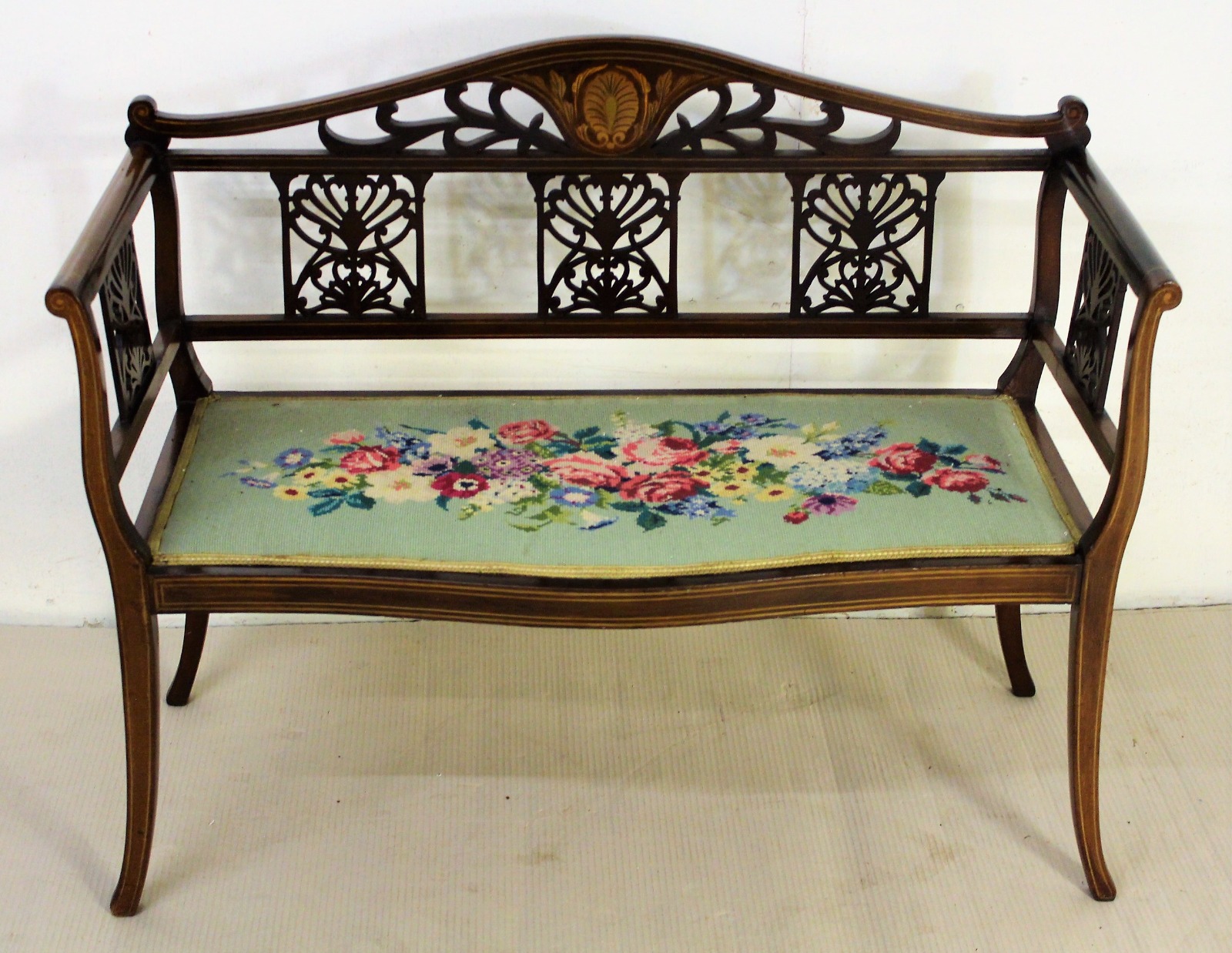 Edwardian Inlaid Mahogany Settee Bench (1 of 11)