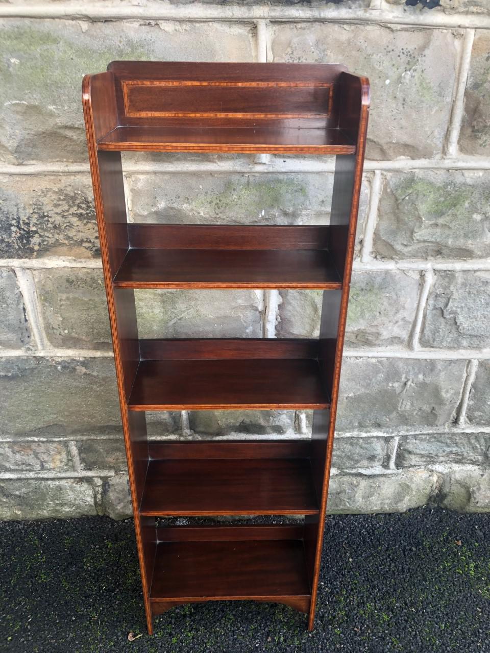Edwardian Inlaid Mahogany Slim Open Bookcase