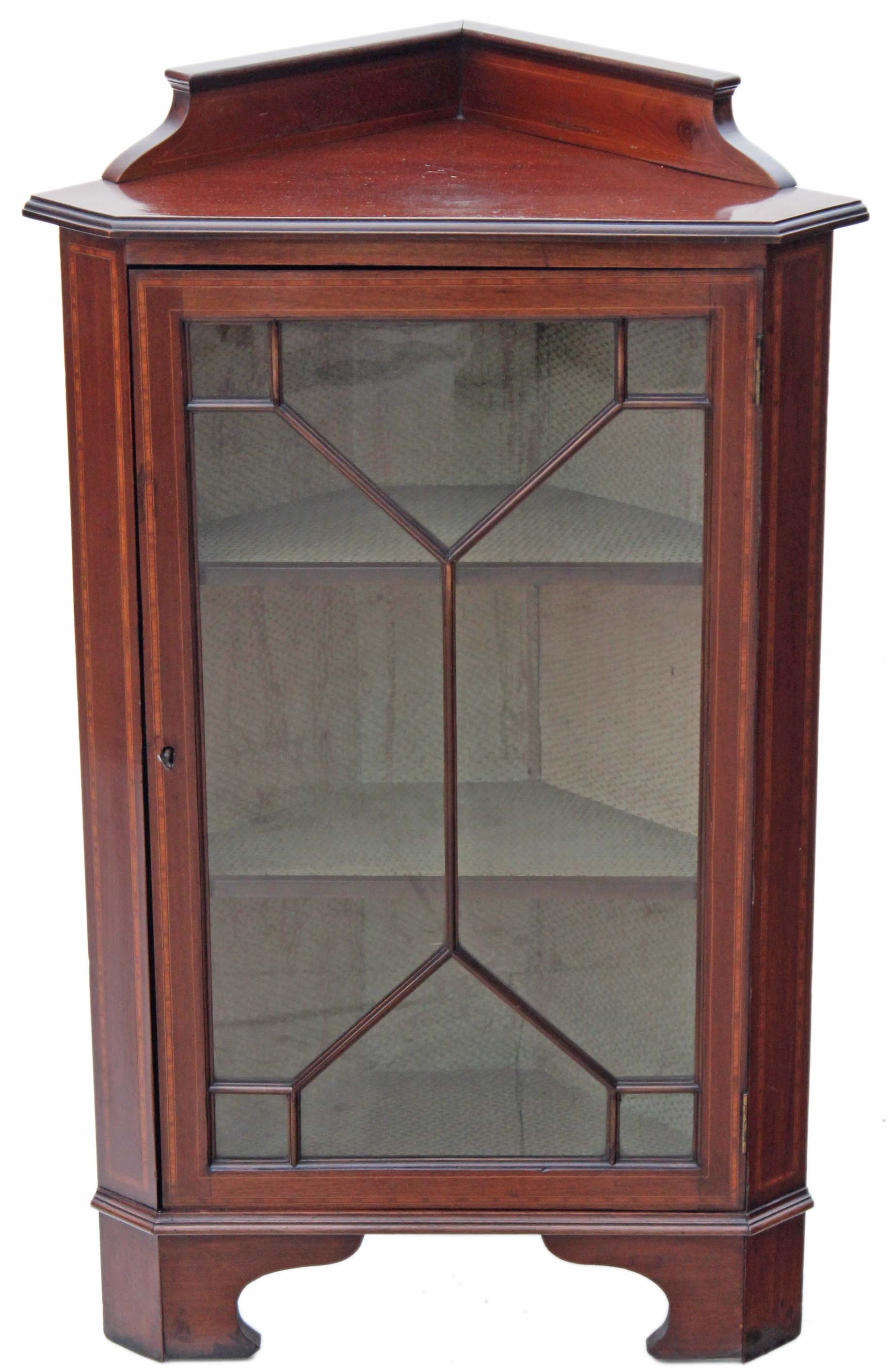 Edwardian Inlaid Mahogany Walnut Corner Display Cabinet
