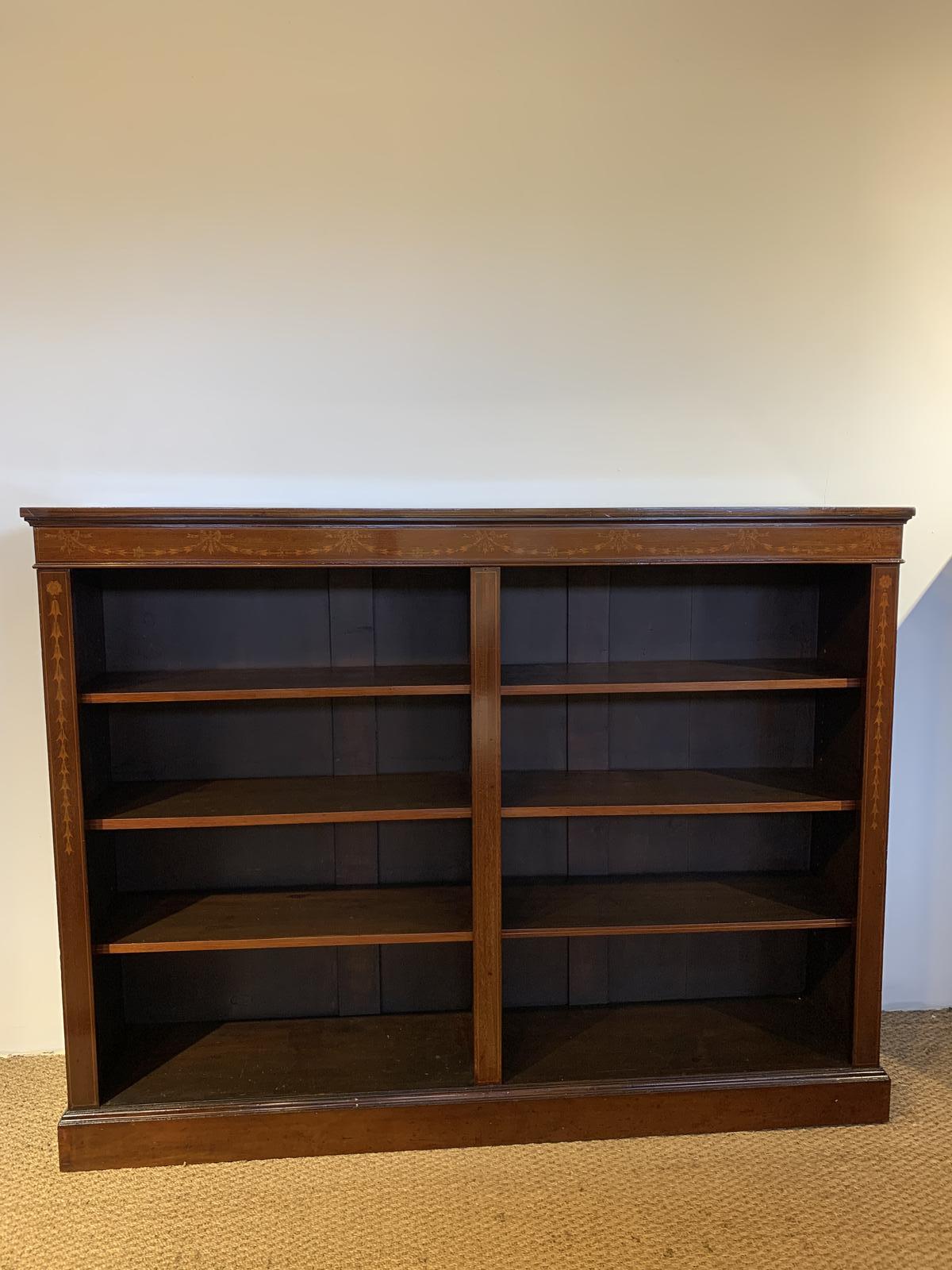 Edwardian Inlaid Open Bookcase