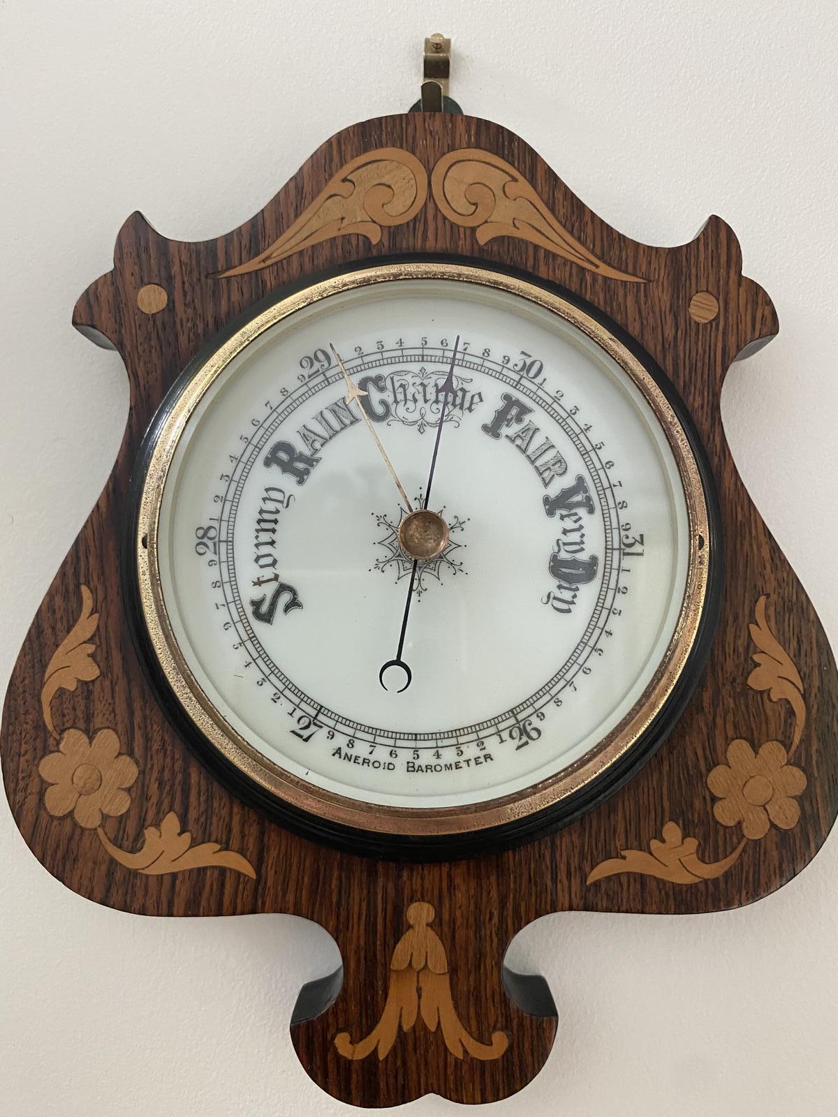 Edwardian Inlaid Rosewood Aneroid Barometer