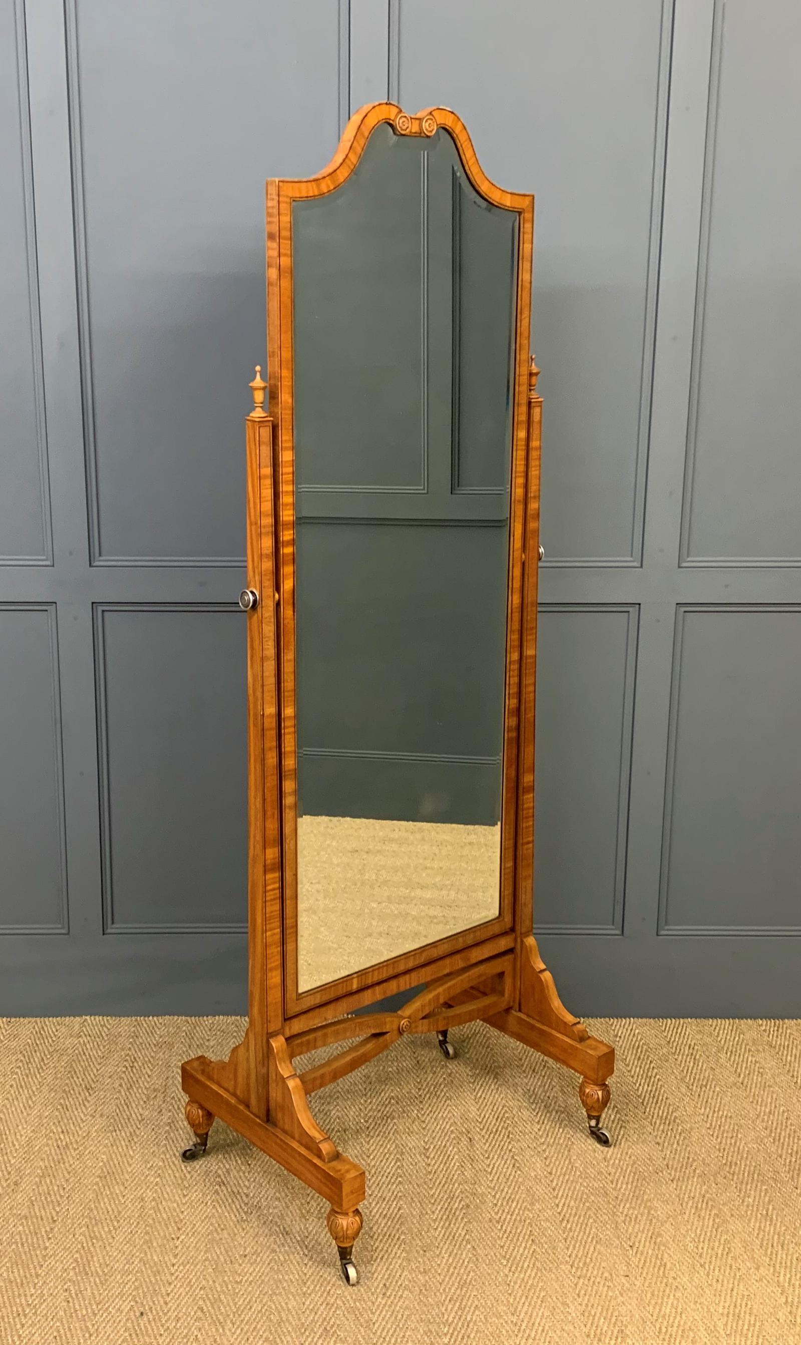 Edwardian Inlaid Satinwood Cheval Mirror (1 of 11)