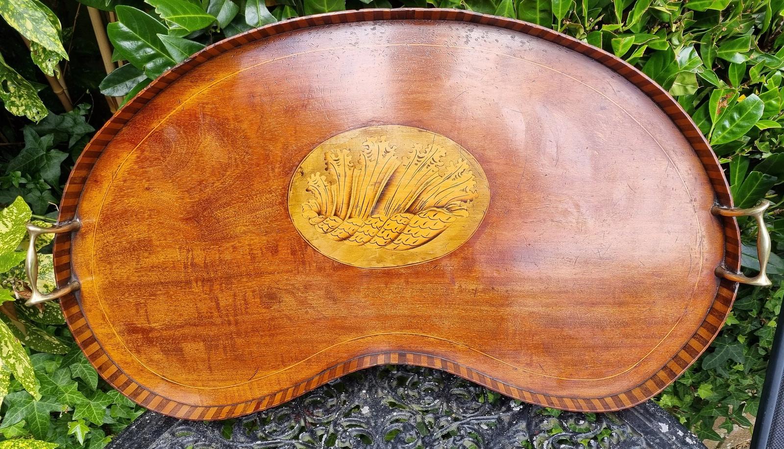 Edwardian Kidney Shaped Tray Shell Inlay & Brass Handles