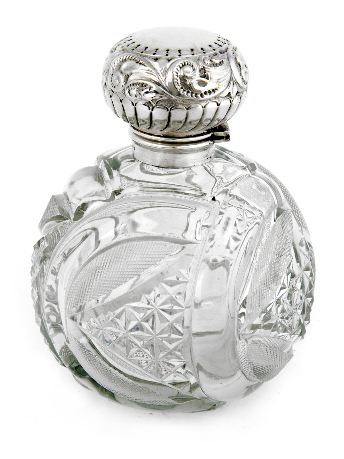 Edwardian Large Size Cut Glass & Silver Topped Perfume Bottle (1 of 1)