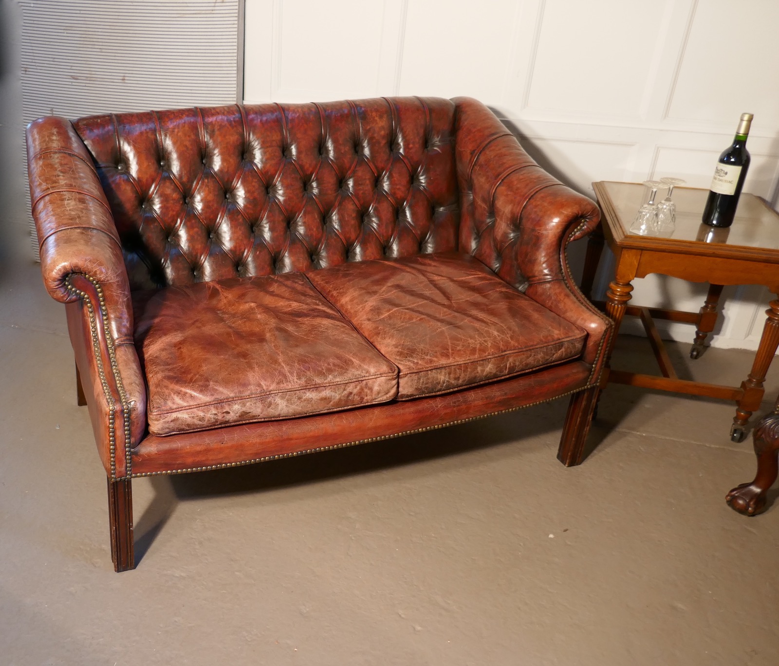 Edwardian Leather 2 Seater Library Chesterfield Settee