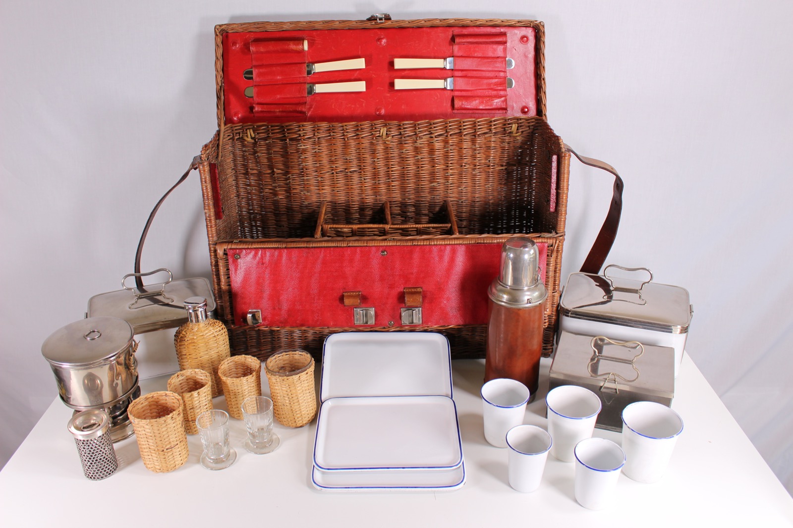 Edwardian Leather Mounted Wicker Picnic Hamper