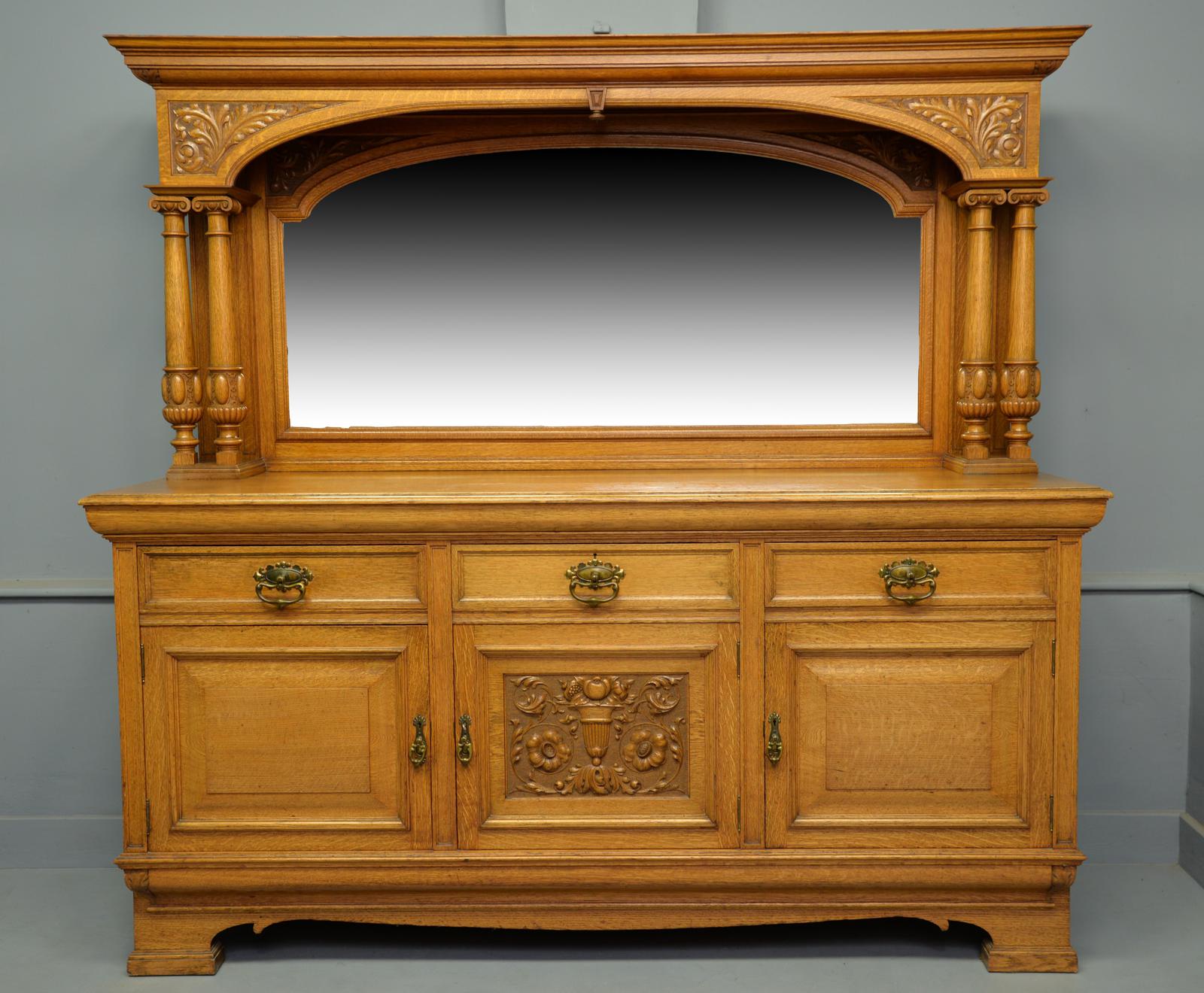 Edwardian Light Oak Carved Mirror-back Sideboard