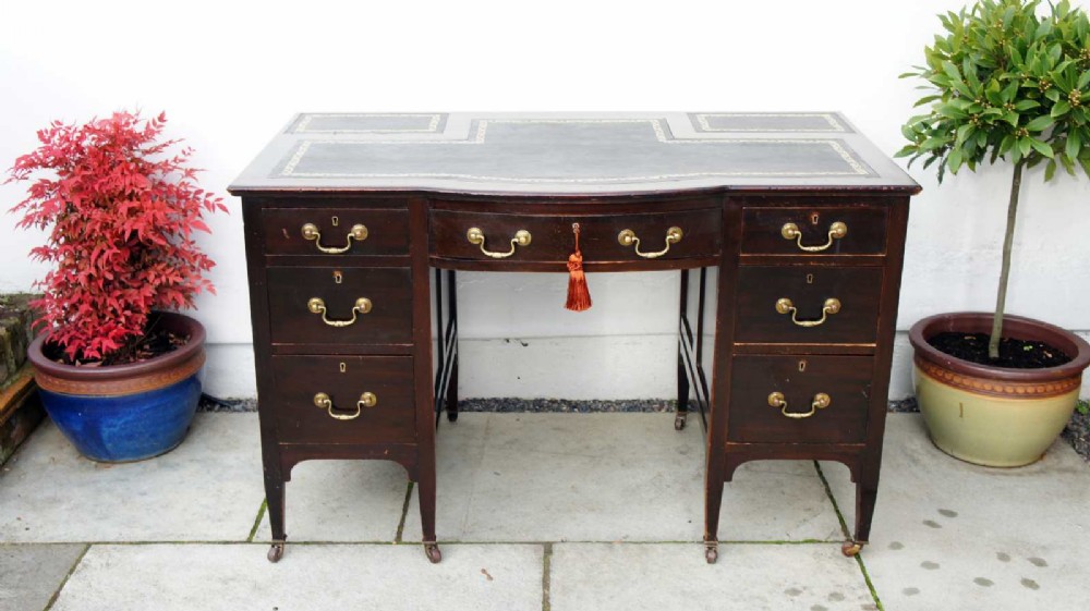 Edwardian Mahogany 7 Drawer Serpentine Fronted Desk, Leather Top - Refurbished
